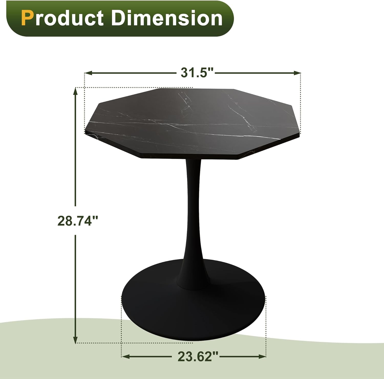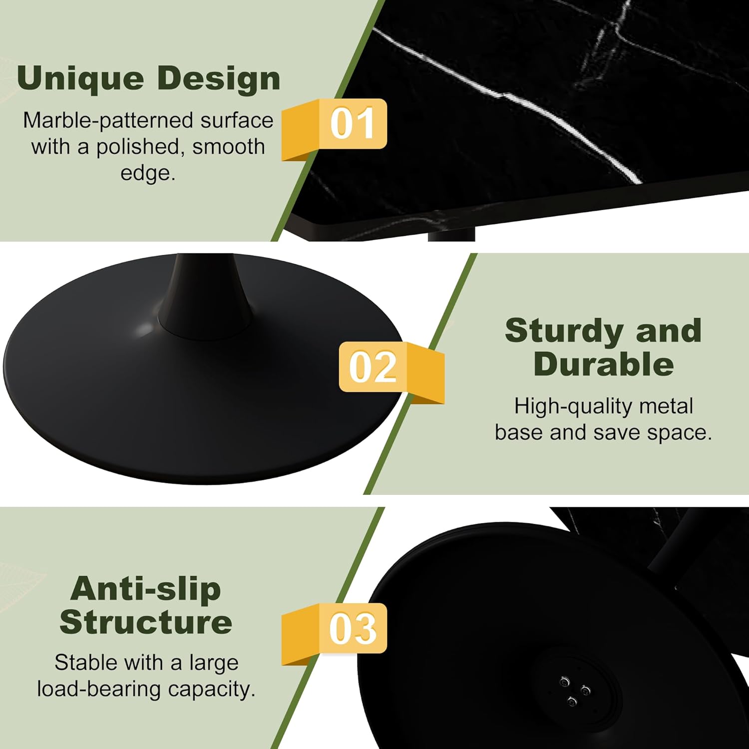 Dining Table for 2-4, 31.5" Kitchen Table with Printed Marble Top, Modern Tables for Dining Room, Living Room, Coffee Bar, Black
