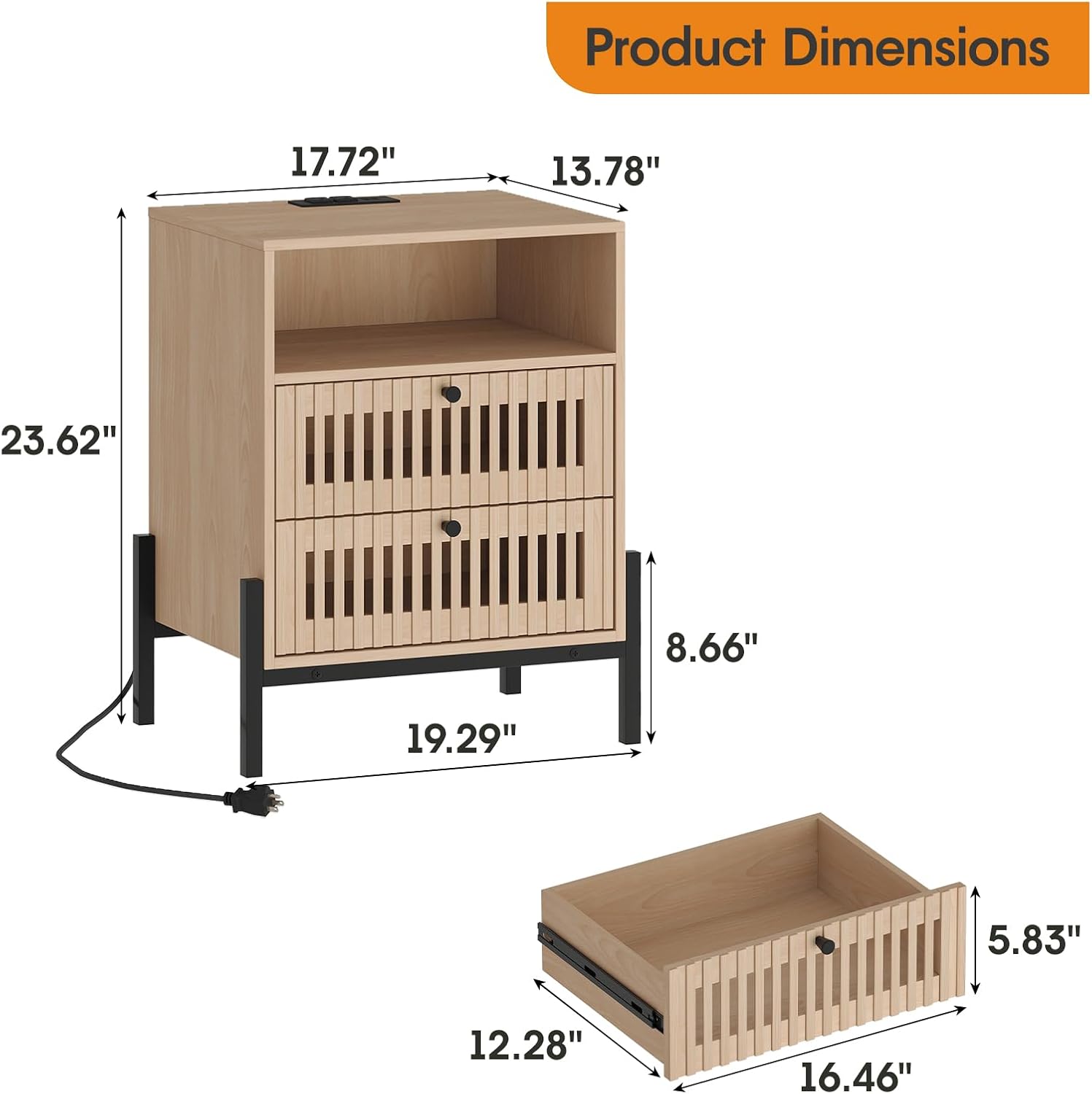 - Convenient Power Outlet & USB Port: Equipped with a built-in power outlet in the tabletop, this nightstand ensures your electronic devices are always within reach and fully charged, enhancing convenience in your bedroom or living space.