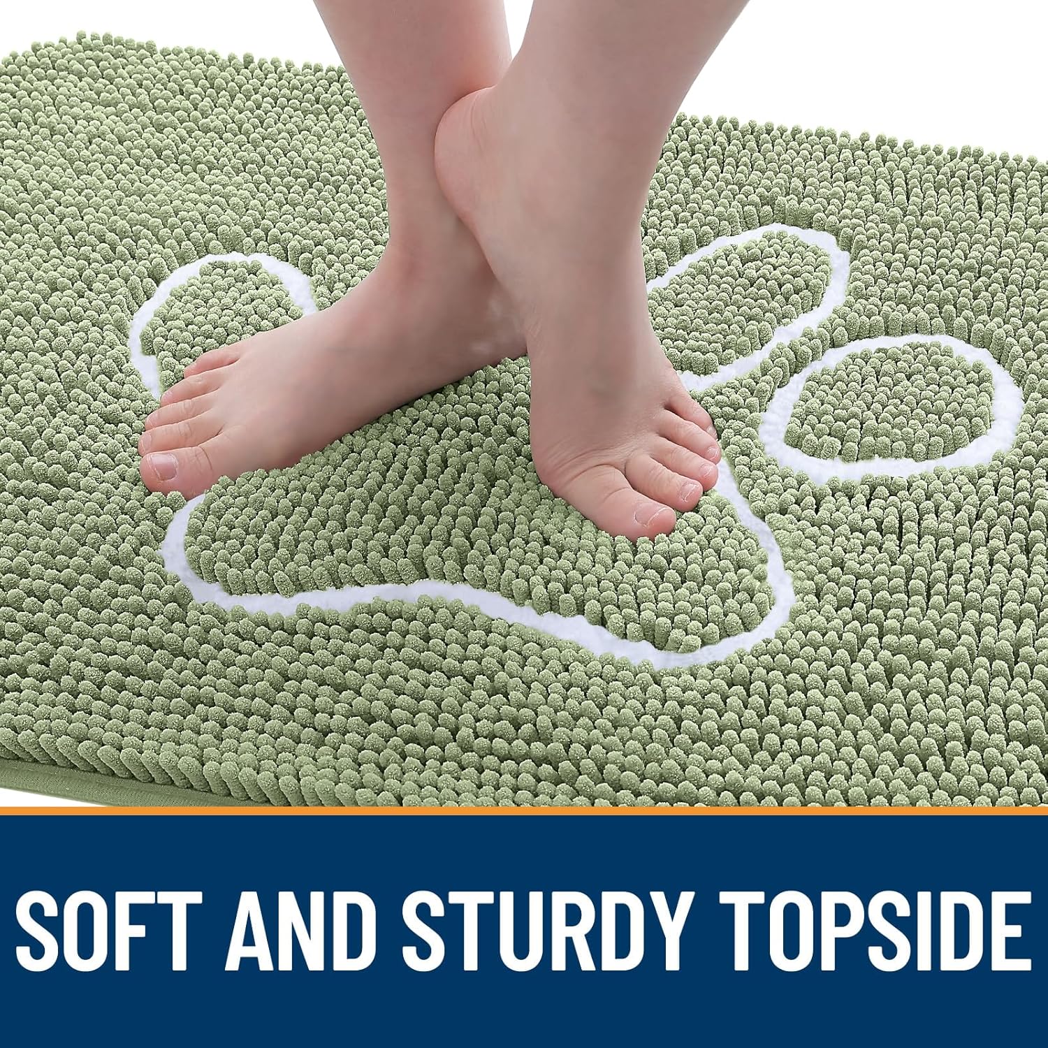 OLANLY Door Mat for Muddy Dog Paws 47x24, Ultra Absorbent Chenille Mud Doormat with Paw Print Design, Non-Slip Washable Doormat for Indoor Entryway, Quick-Dry Pet Bed Mats for Dirty Dogs, Sage Green