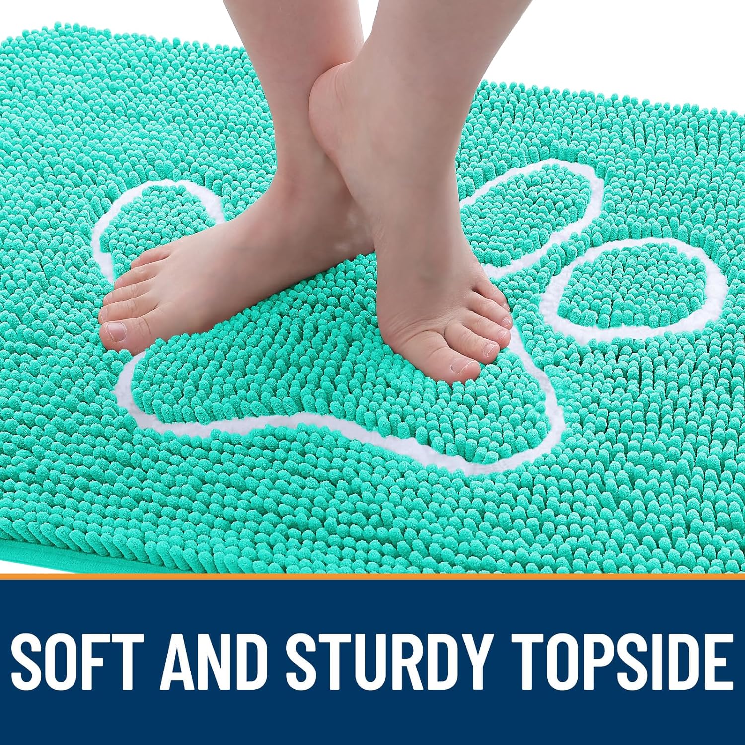 OLANLY Door Mat for Muddy Dog Paws 24x16, Ultra Absorbent Chenille Mud Doormat with Paw Print Design, Non-Slip Washable Doormat for Indoor Entryway, Quick-Dry Pet Bed Mats for Dirty Dogs, Teal