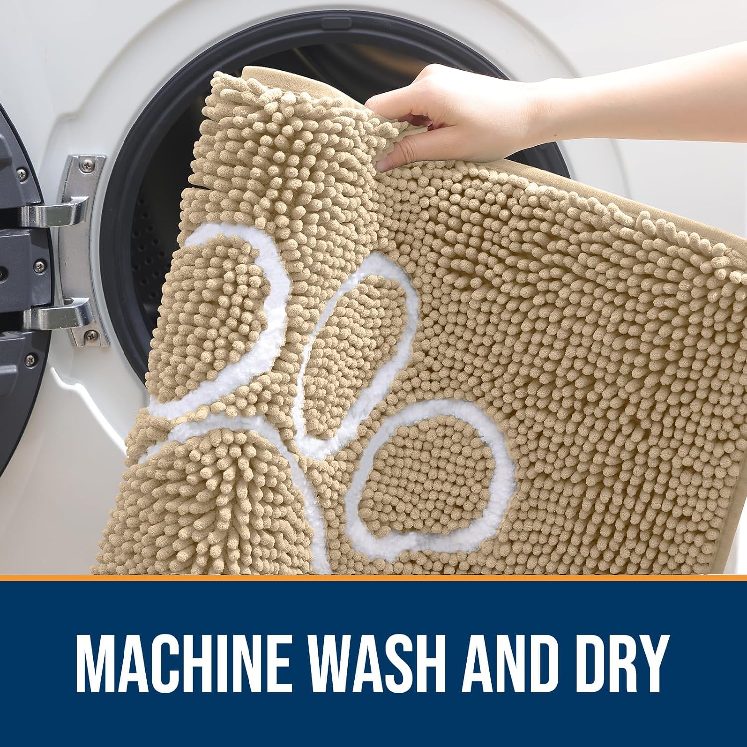 OLANLY Door Mat for Muddy Dog Paws 47x24, Ultra Absorbent Chenille Mud Doormat with Paw Print Design, Non-Slip Washable Doormat for Indoor Entryway, Quick-Dry Pet Bed Mats for Dirty Dogs, Beige