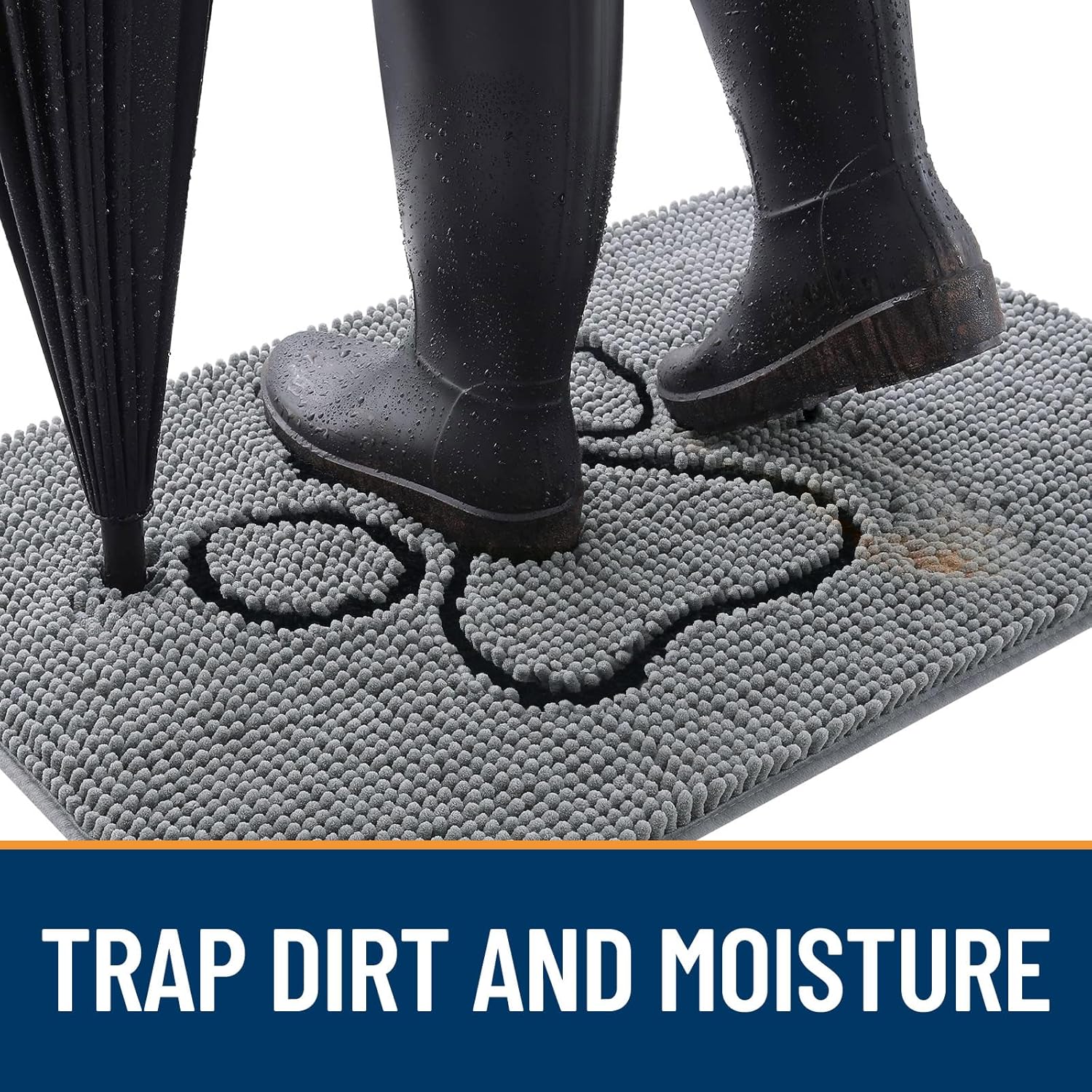 - [ABSORBS MOISTURE AND DIRT] OLANLY indoor dog mat for muddy paws is crafted to efficiently remove dirt and swiftly absorb moisture. With our doormat, your shoes will be instantly clear of any water, dust, grit, muck, sand, sleet, grass, slush, rain, or snow upon entering the house. It's an excellent choice for use as an entryway door mat, a welcoming door mat, or a dirt-trapping mat.