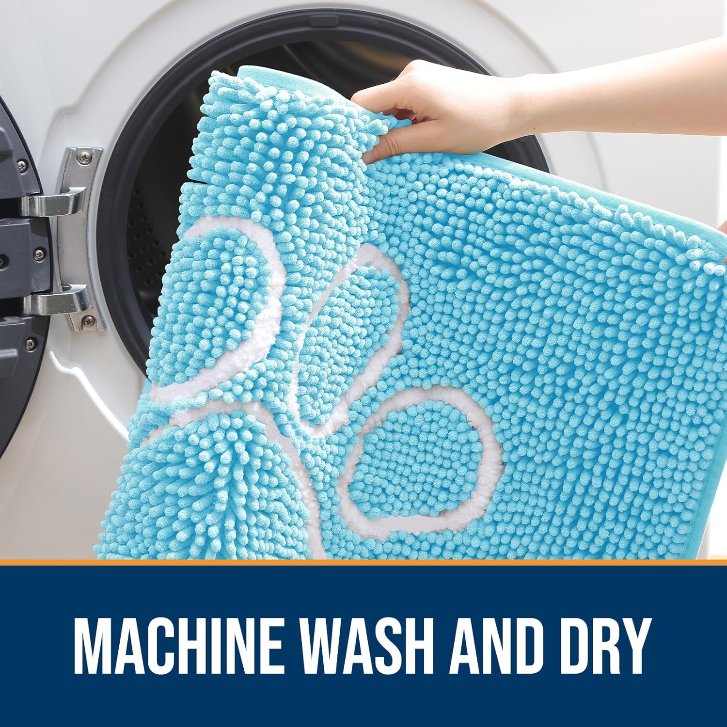 OLANLY Door Mat for Muddy Dog Paws 48x30, Ultra Absorbent Chenille Mud Doormat with Paw Print Design, Non-Slip Washable Doormat for Indoor Entryway, Quick-Dry Pet Bed Mats for Dirty Dogs, Blue