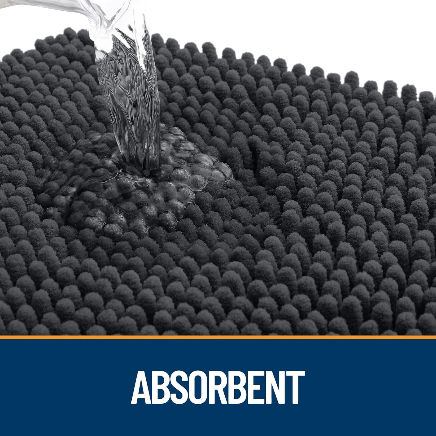 OLANLY Door Mat for Muddy Dog Paws 59x35, Ultra Absorbent Chenille Mud Doormat with Paw Print Design, Non-Slip Washable Doormat for Indoor Entryway, Quick-Dry Pet Bed Mats for Dirty Dogs, Dark Grey