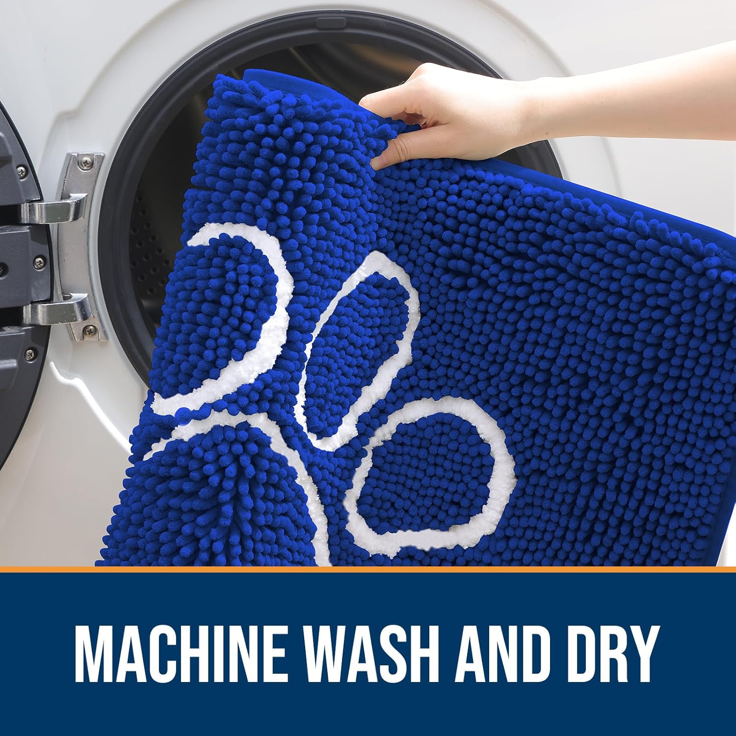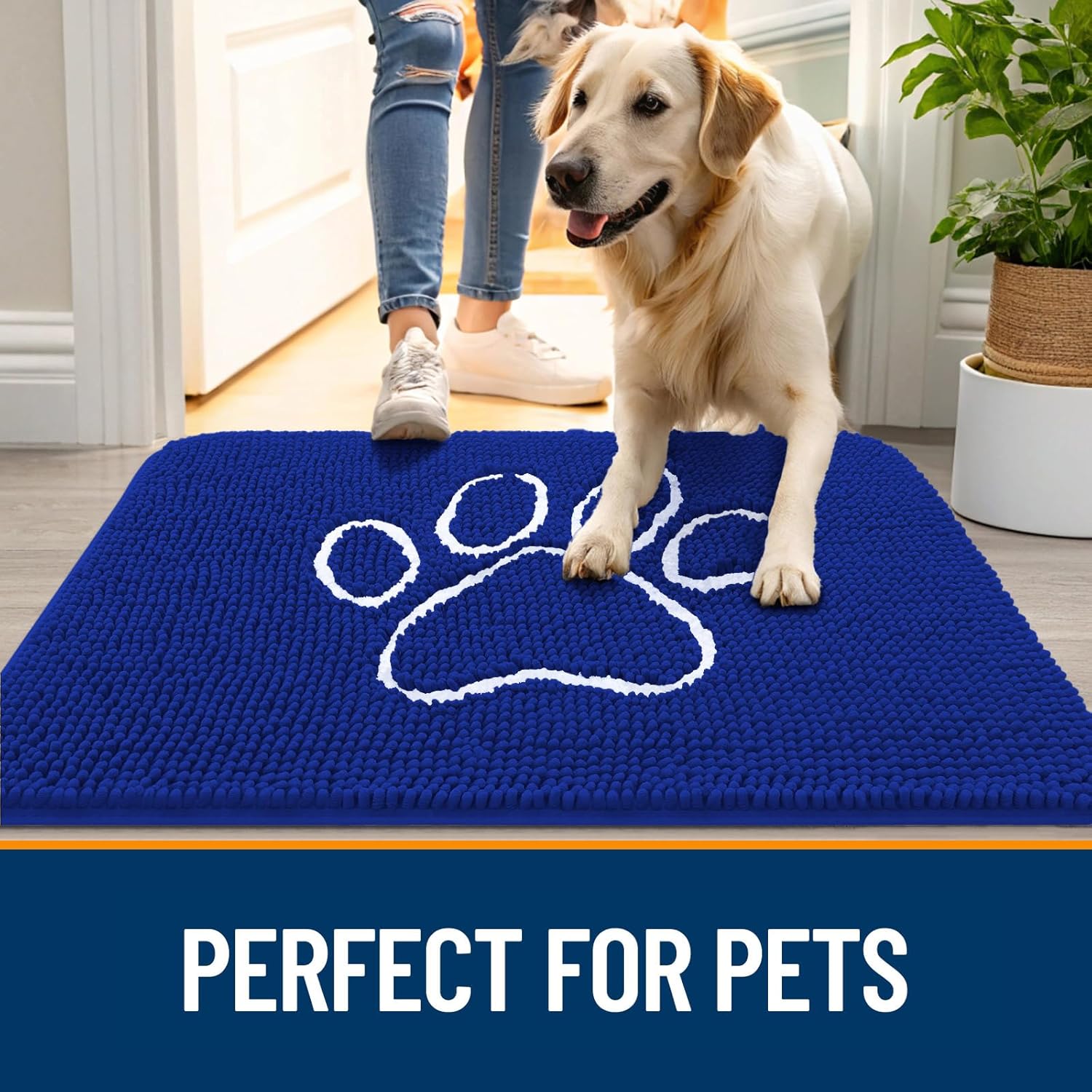 OLANLY Door Mat for Muddy Dog Paws 30x20, Ultra Absorbent Chenille Mud Doormat with Paw Print Design, Non-Slip Washable Doormat for Indoor Entryway, Quick-Dry Pet Bed Mats for Dirty Dogs, Royal Blue
