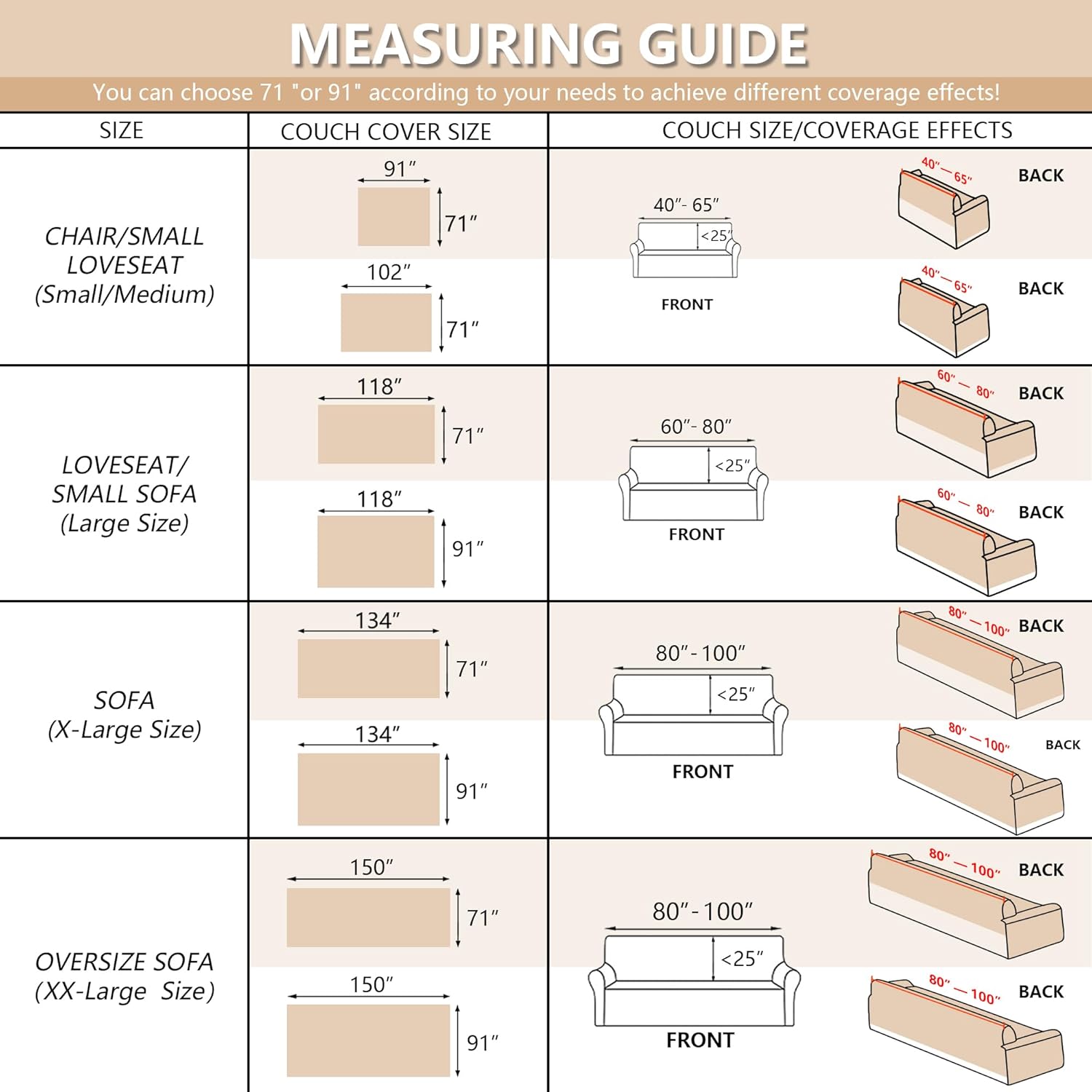 - Product Size: We offer a variety of sizes for you to choose from,Medium Size (71"x91",71"x102") for loveseat sofa futon chair,Large Size (71"x118", 91"x118") for 2-3 seats,X-Large Size (71"x134", 91"x134") for 3 seats, XX-Large Size (71"x150", 91"x150") for 4 seats, choose the right size according to the actual sofa size. You can choose 71" or 91" according to your needs to achieve different coverage effects!