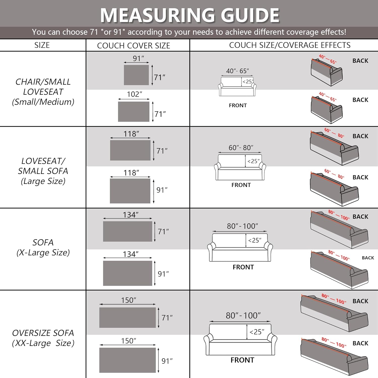 - Product Size: We offer a variety of sizes for you to choose from,Medium Size (71"x91",71"x102") for loveseat sofa futon chair,Large Size (71"x118", 91"x118") for 2-3 seats,X-Large Size (71"x134", 91"x134") for 3 seats, XX-Large Size (71"x150", 91"x150") for 4 seats, choose the right size according to the actual sofa size. You can choose 71" or 91" according to your needs to achieve different coverage effects!