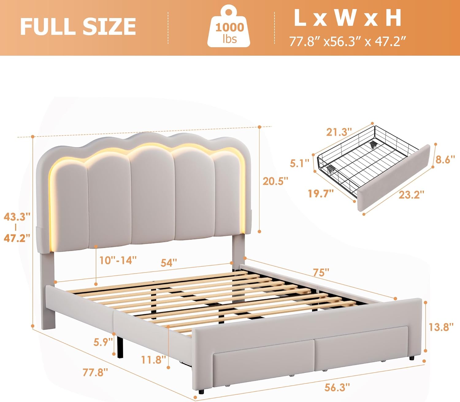 - EASY ASSEMBLY: This full bed frame with led lights is designed for straightforward assembly, including clear instructions, labeled parts, and all necessary tools. Precision-drilled holes make the process fast and effortless, letting you spend less time assembling and more time enjoying your new bed. If you have any questions before or after purchase, our dedicated support team is available to assist you and will respond within 24 hours