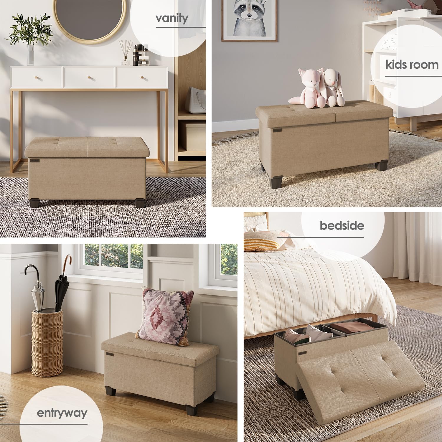 - Durable Fabric Ottoman: Organize essentials and accessories with this multipurpose storage ottoman bench that provides you with a comfortable seat for putting on socks and shoes, while making a statement as an end of bed storage bench or entry bench with storage.
