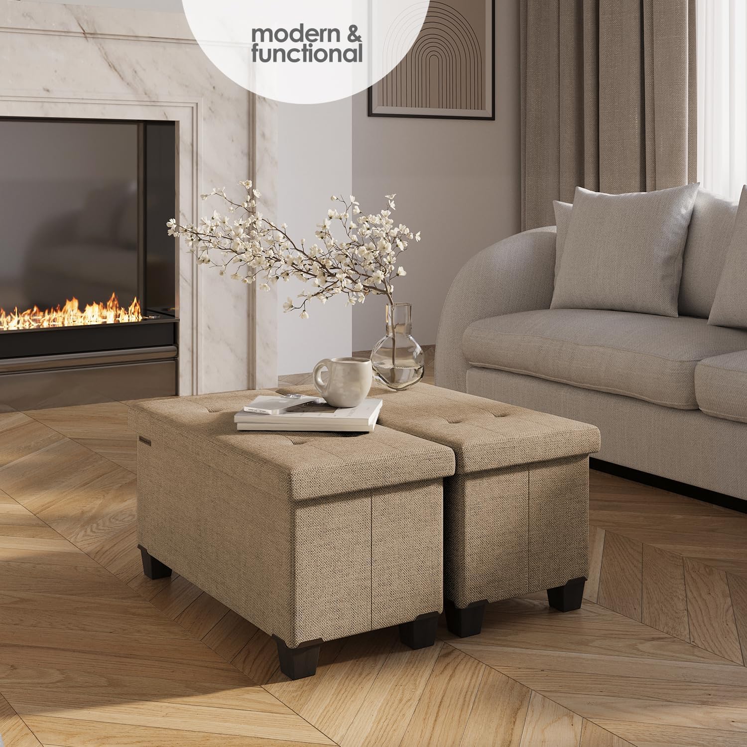 - Two Removable Storage Bins: Keep small, loose items out of sight yet neatly organized with easily accessible storage bins, while the large ottoman space stores bulkier items like throw blankets and pillows.