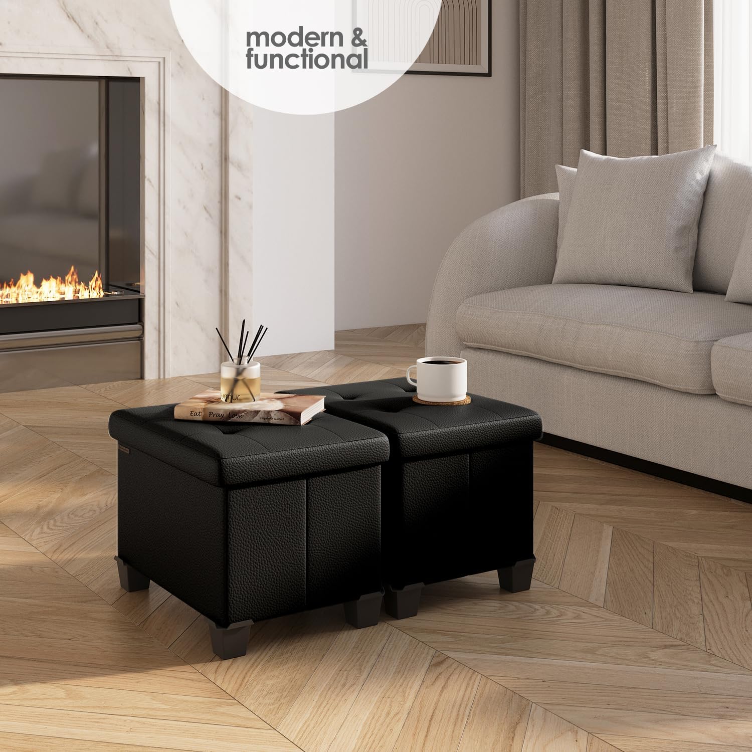 - Black Ottoman Storage Cube: This storage ottoman with storage for living room decor transforms your space and reduces clutter, and can be used as a foot stools ottoman, storage chest or small ottoman foot rest. Max weight 330 lbs.