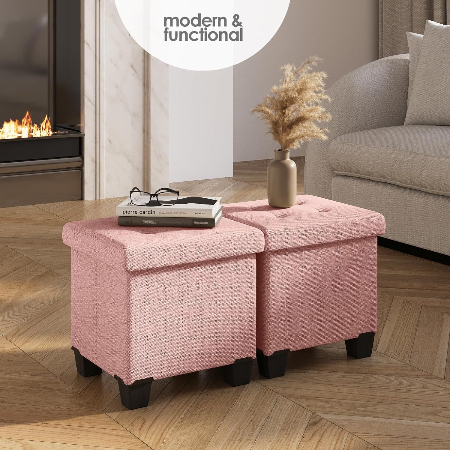 - Pink Ottoman Storage Cube: This storage ottoman with storage for living room decor transforms your space and reduces clutter, and can be used as a foot stools ottoman, storage chest or small ottoman foot rest. Max weight 330 lbs.
