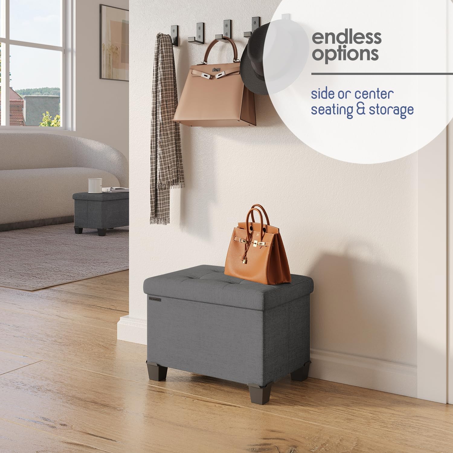 - One Removable Storage Bin: Keep small, loose items neatly organized with the easily accessible storage bin, and store bulkier items like throw blankets and pillows in the large ottoman space.