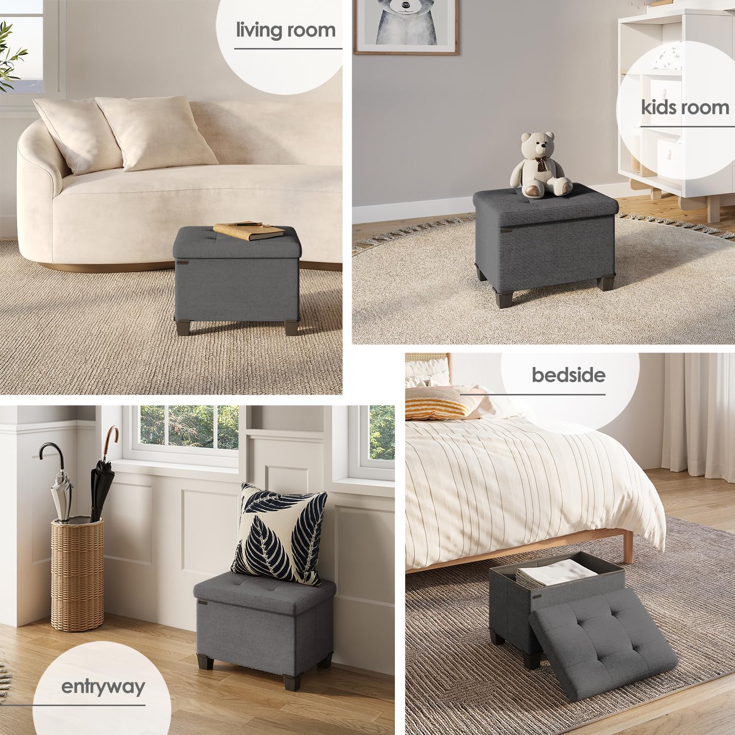- Grey Ottoman Storage Cube: This storage ottoman with storage for living room decor transforms your space and reduces clutter, and can be used as a foot stools ottoman, storage chest or small ottoman foot rest. Max weight 330 lbs.