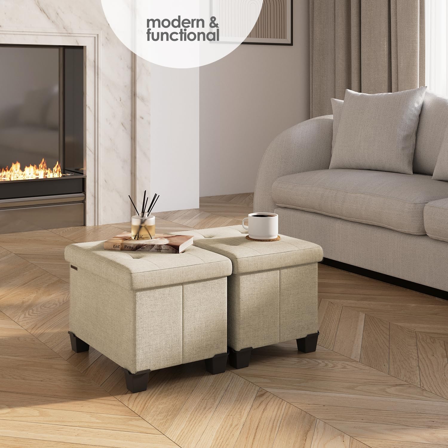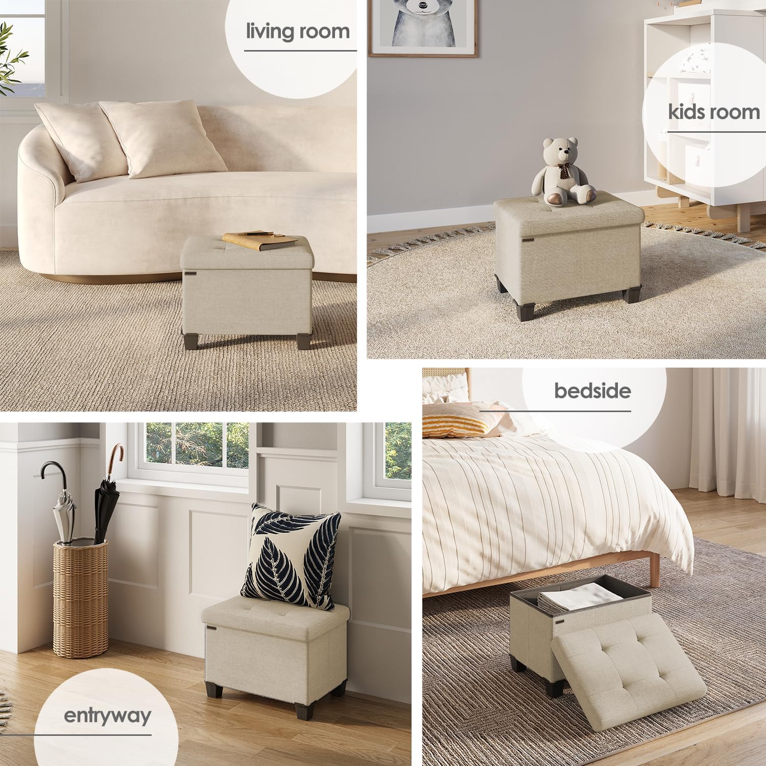 - Beige Ottoman Storage Cube: This storage ottoman with storage for living room decor transforms your space and reduces clutter, and can be used as a foot stools ottoman, storage chest or small ottoman foot rest. Max weight 330 lbs.