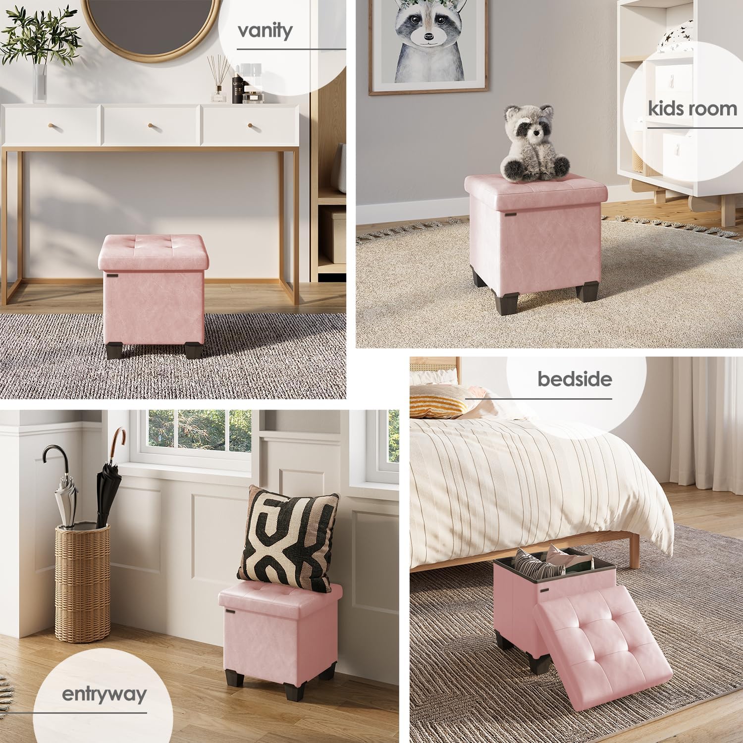 - PInk Ottoman Storage Cube: This storage ottoman with storage for living room decor transforms your space and reduces clutter, and can be used as a foot stools ottoman, storage chest or small ottoman foot rest. Max weight 330 lbs.