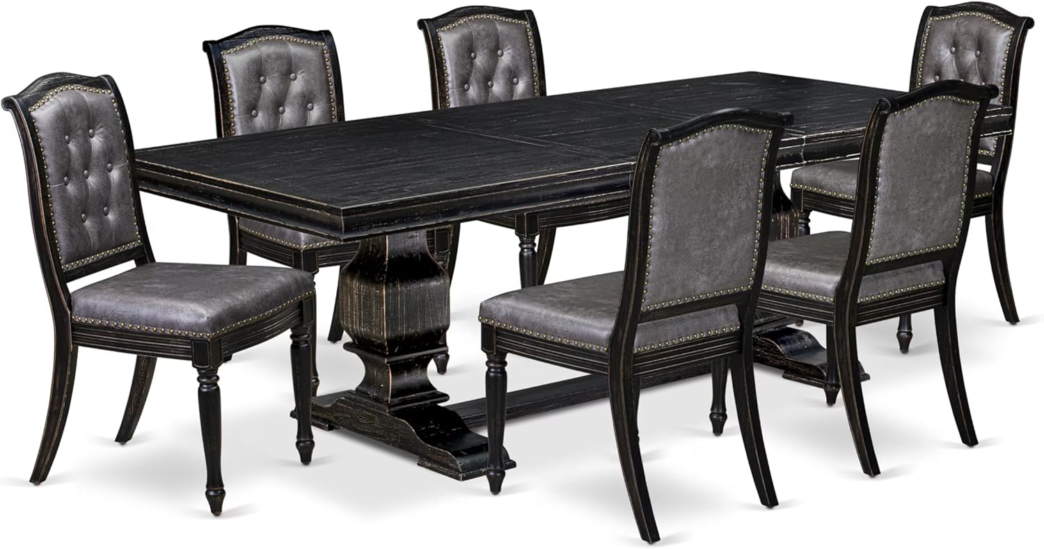 - MODERN DINING TABLE SET: Comprising a removable leaf dining table and 6 kitchen chairs, this 7-piece dining table set creates a cohesive and stylish dining area perfect for hosting guests. Its sturdy construction and elegant design seamlessly integrate with any interior decor, offering both functionality and aesthetic appeal. By blending classic elements with modern flair, this set enhances your home's ambiance with a timeless touch of sophistication.