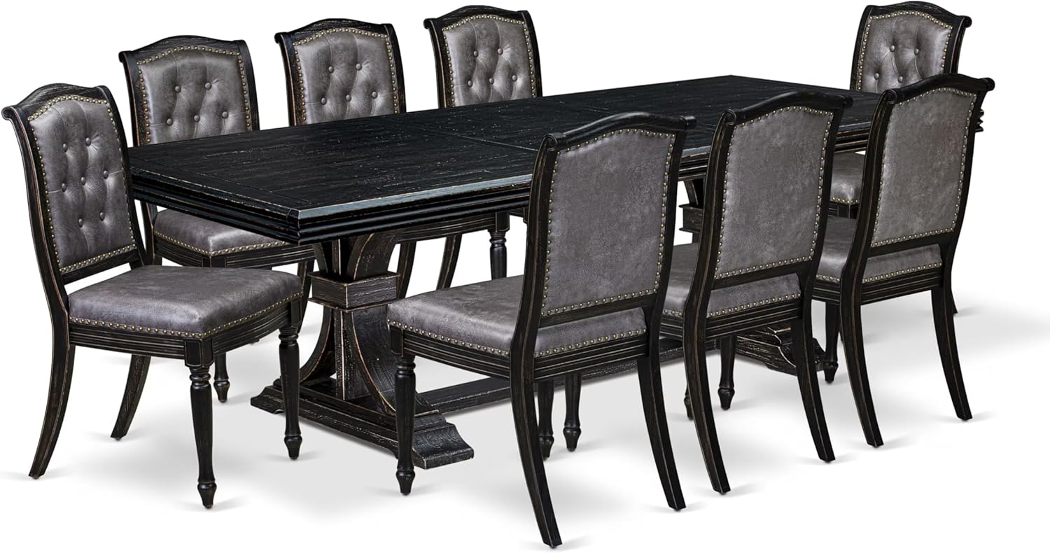 - MID CENTURY MODERN DINING TABLE SET: This 9-piece dining set includes a table with a removable leaf and eight chairs, creating a stylish and coordinated dining area perfect for hosting guests. The set's sturdy build and elegant design blend well with any decor, providing both practical use and visual charm. By mixing traditional and modern styles, this set adds a lasting touch of elegance to your home.