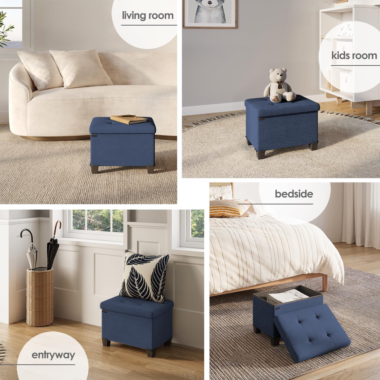 STORAGEBUD Storage Ottoman Cube with Small Bin, 16-in Square Ottoman with Storage for Living Room and Bedroom, Small Ottomans Foot Rest, Fabric Foot Stools Ottomans Max 330lbs, Blue
