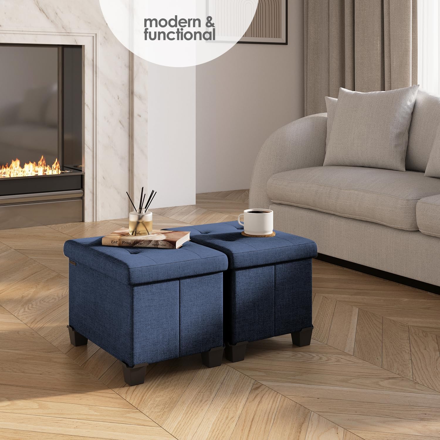 - Blue Ottoman Storage Cube: This storage ottoman with storage for living room decor transforms your space and reduces clutter, and can be used as a foot stools ottoman, storage chest or small ottoman foot rest. Max weight 330 lbs.