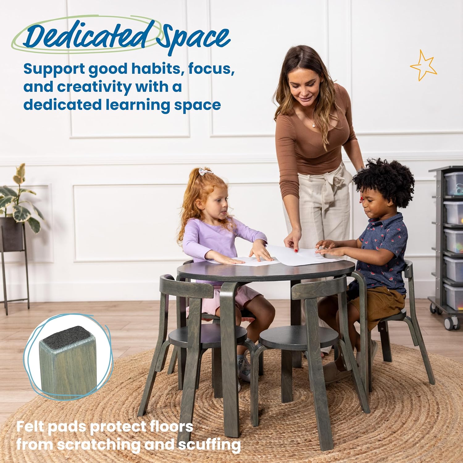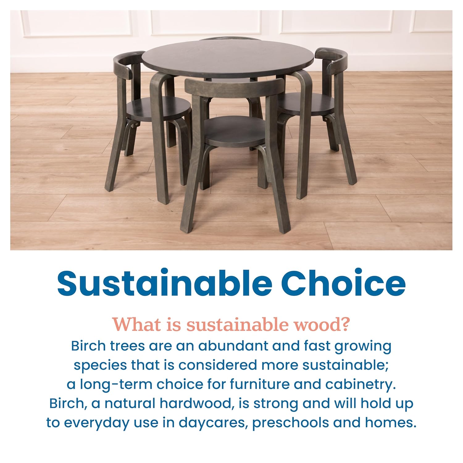 ECR4Kids Bentwood Round Table and Curved Back Chair Set, Kids Furniture, Grey Wash, 5-Piece