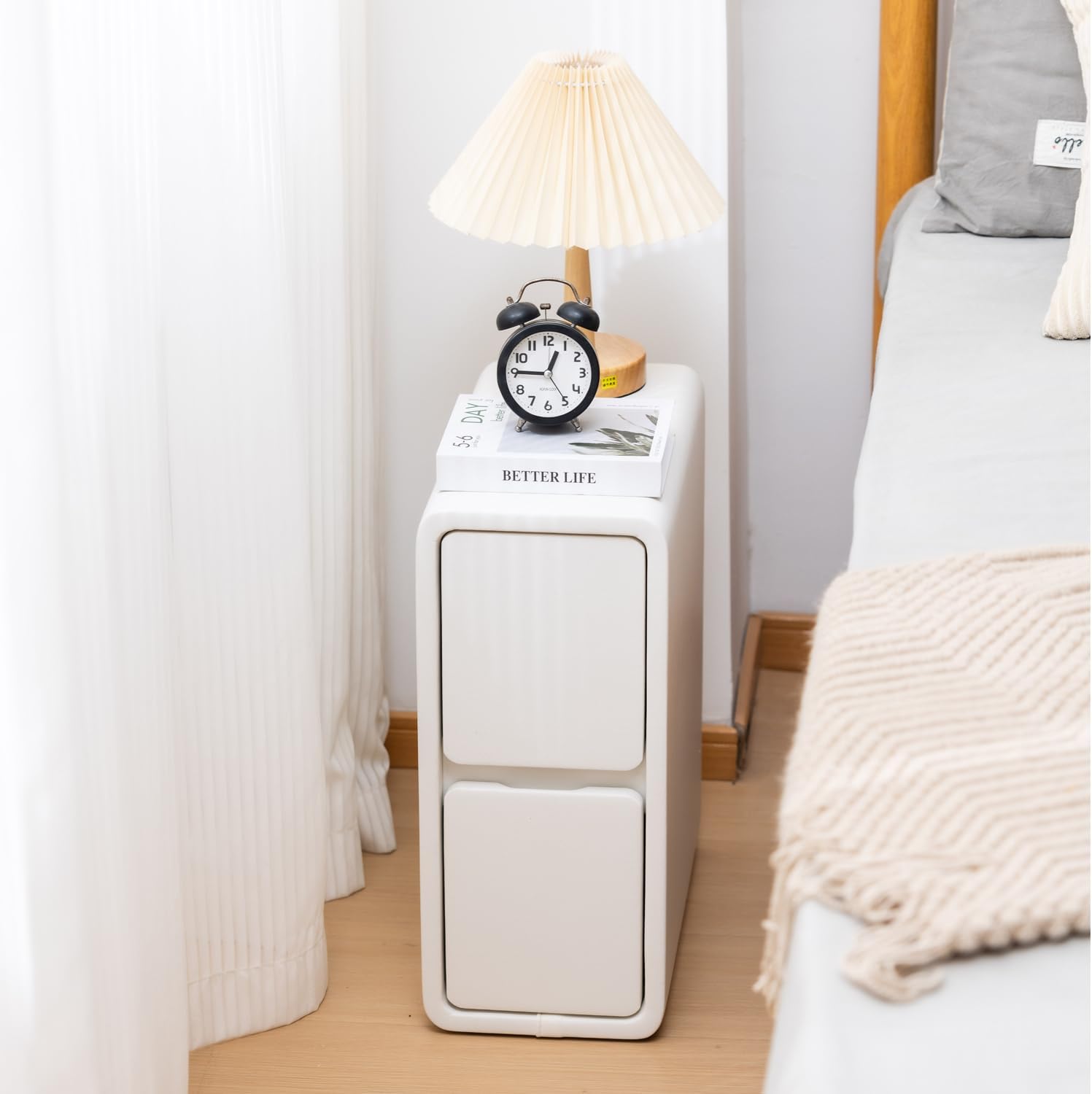 Narrow Nightstand, Solid Wood Night Stand, Slim Nightstands for Small Spaces, Couch, White Color 7.87in Wide