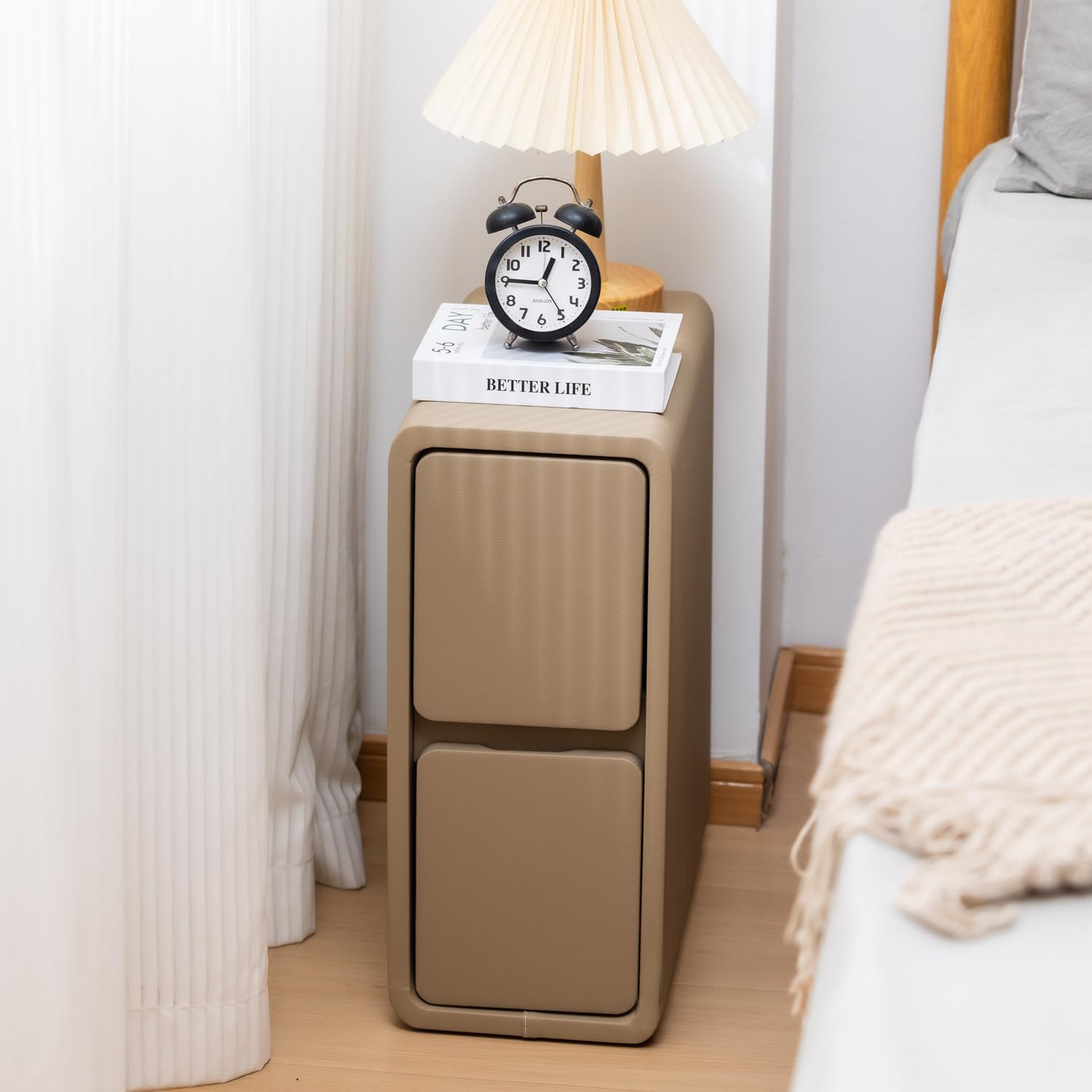 Narrow Nightstand, Solid Wood Night Stand for Small Spaces, Couch, Khaki Color 7.87in Wide