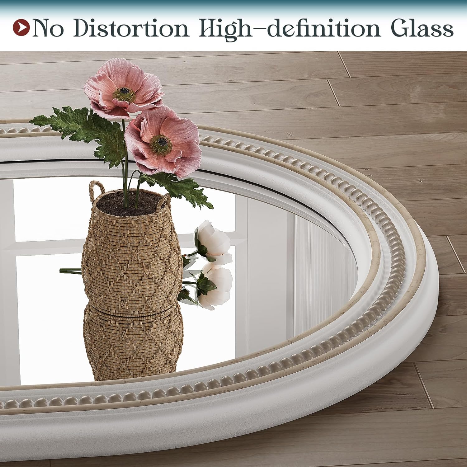 - Built to Last: Farmhouse oval mirrors are made with wood and 4 MM clear glass, this antique beaded mirror holds up well in steamy bathrooms or everyday use. just a crisp reflection every time