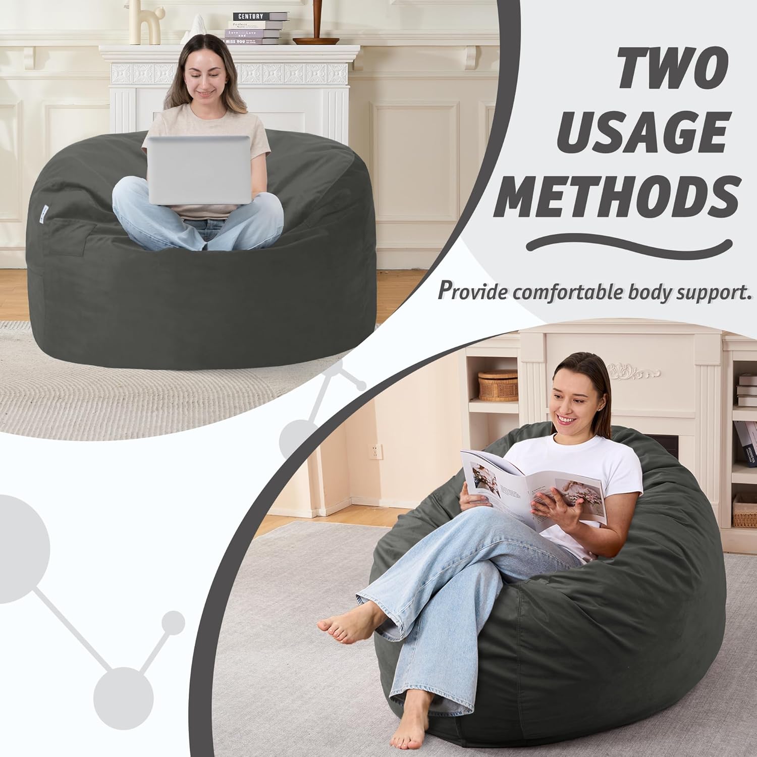 - 🎀【Fit for Whole Family & Multifunctional】3ft beanbag is suitable for youth, 4ft beanbag chair is suitable for women and children, 5ft bean bag is suitable for a family, different sizes and colors to meet your needs. The saucer chair can be used as a bed, a chair, or a lazy sofa, suitable for reading, playing, watching TV, sleeping... As well as bedrooms, living rooms, university dormitories, etc. In addition, it is a good gift for family and friends!