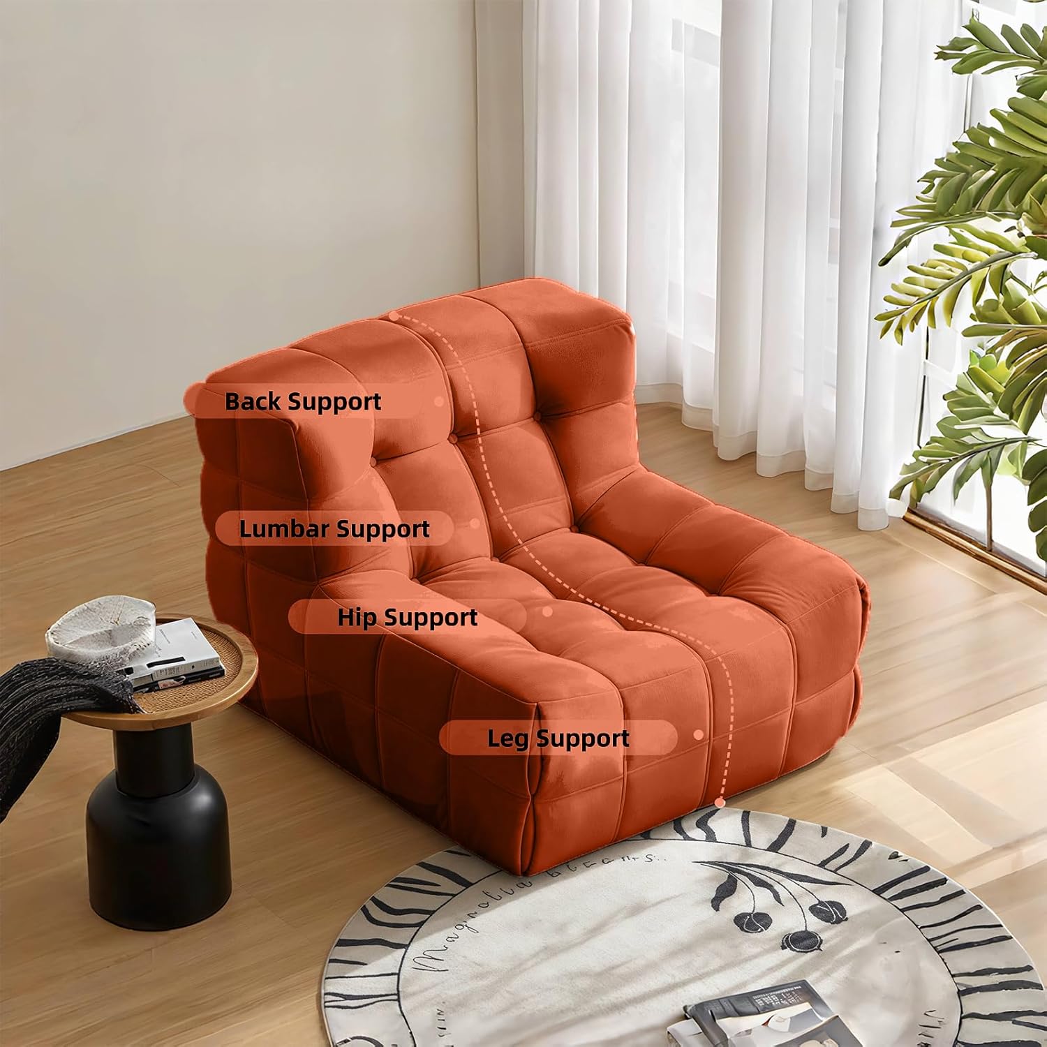 Bean Bag Chair - Memory Foam Bean Bag Chair for Adults, Comfy High-Resilience Single Sofa, Small Space Floor Chair, Chaise Lounge for Living Room, Bedroom (Orange, Square)
