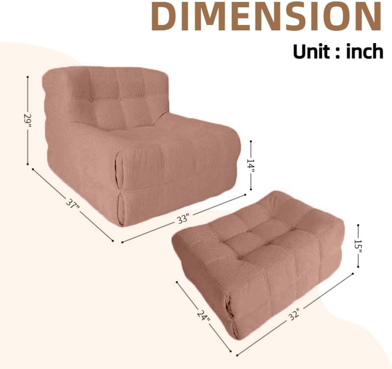 - 【Cooperate with Ottoman】This sofa is paired with ottoman (sofa and ottoman are shipped separately), giving you a feeling of lying in the clouds and relaxing your whole body, enhancing the experience.