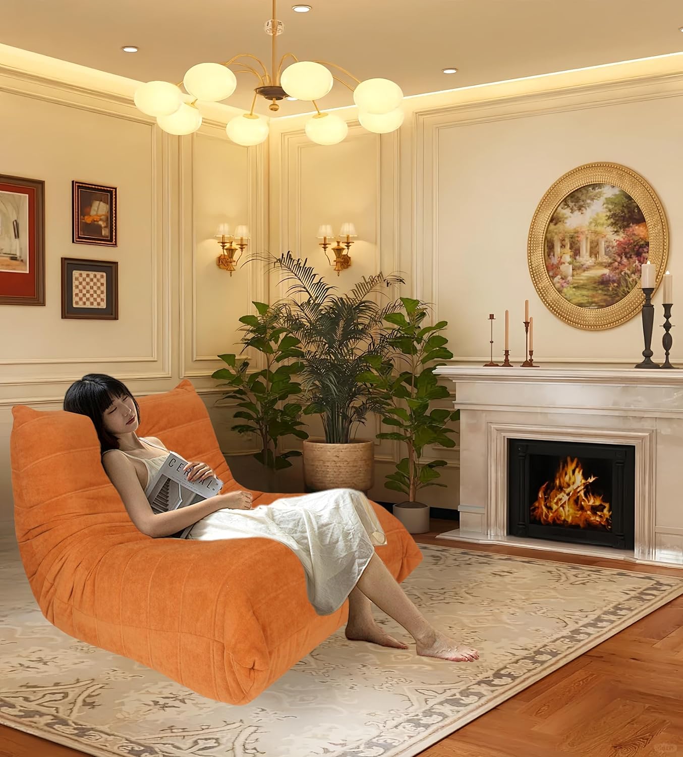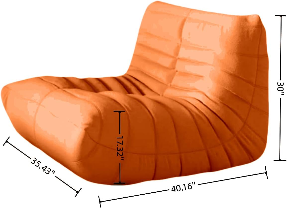 Bean Bag Chair - Memory Foam Bean Bag Chair for Adults, Comfy High-Resilience Single Sofa, Small Space Floor Chair, Chaise Lounge for Living Room, Bedroom (Orange, Wrinkles)