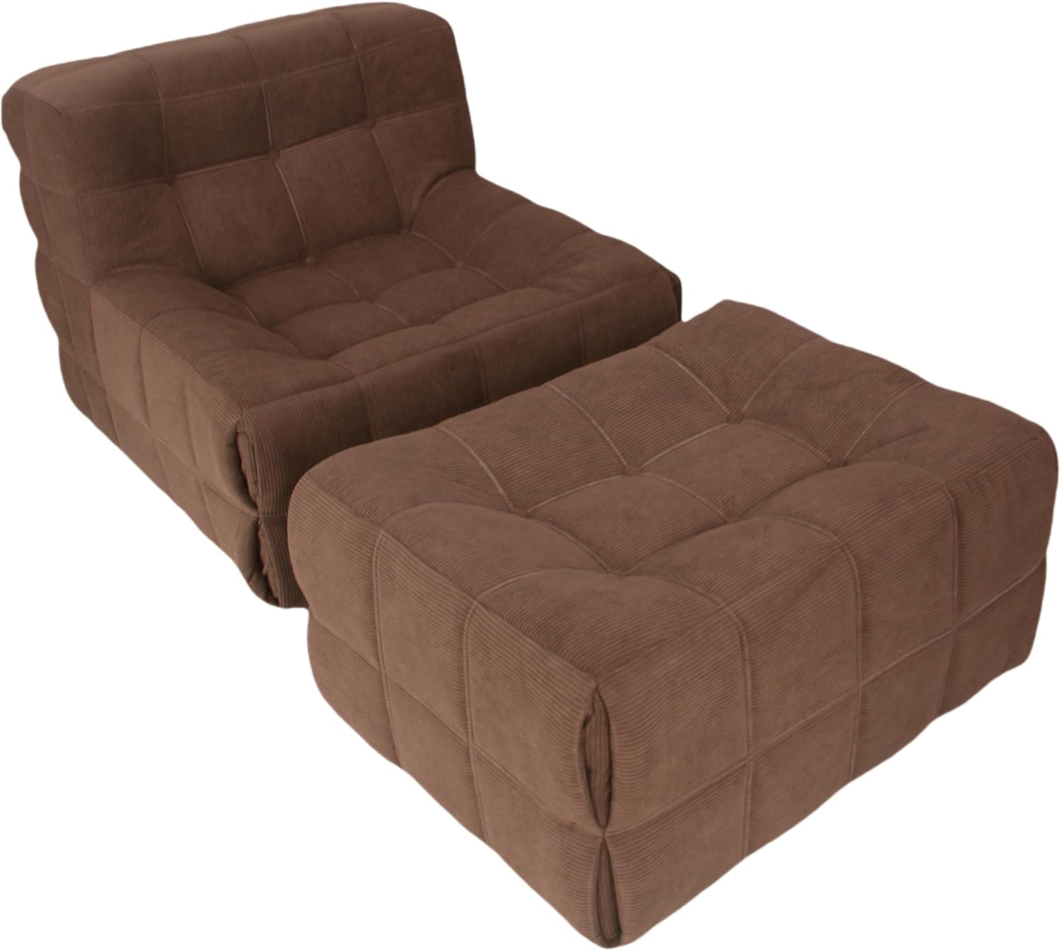 Bean Bag Chair - Memory Foam Bean Bag Chair for Adults, Comfy High-Resilience Single Sofa, Small Space Floor Chair, Chaise Lounge for Living Room, Bedroom (Dark Brown, Square+Ottoman)