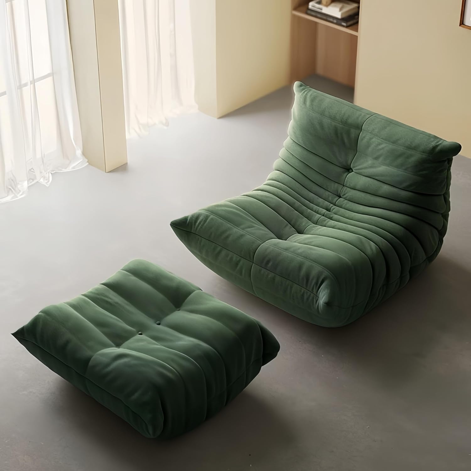 Bean Bag Chair - Memory Foam Bean Bag Chair for Adults, Comfy High-Resilience Single Sofa, Small Space Floor Chair, Chaise Lounge for Living Room, Bedroom(Dark Green, Wrinkles+Ottoman)