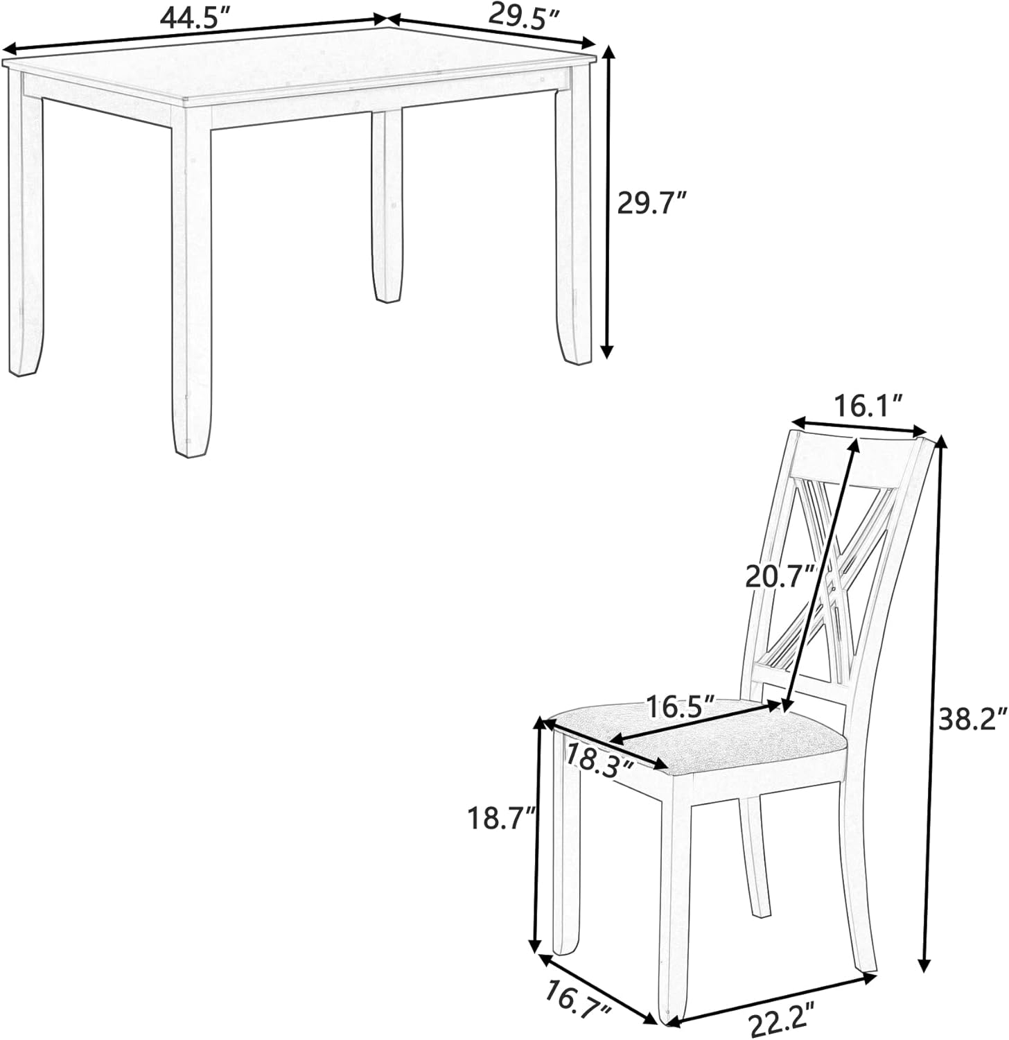 Ball & Cast Dining Table Set for 4 with 4 X-Back Chairs,5-Piece Wooden Living Room Furniture W/ 44.5" Rectangle Kitchen Desk,for Small Space,Apartment,Dining Room,Grey