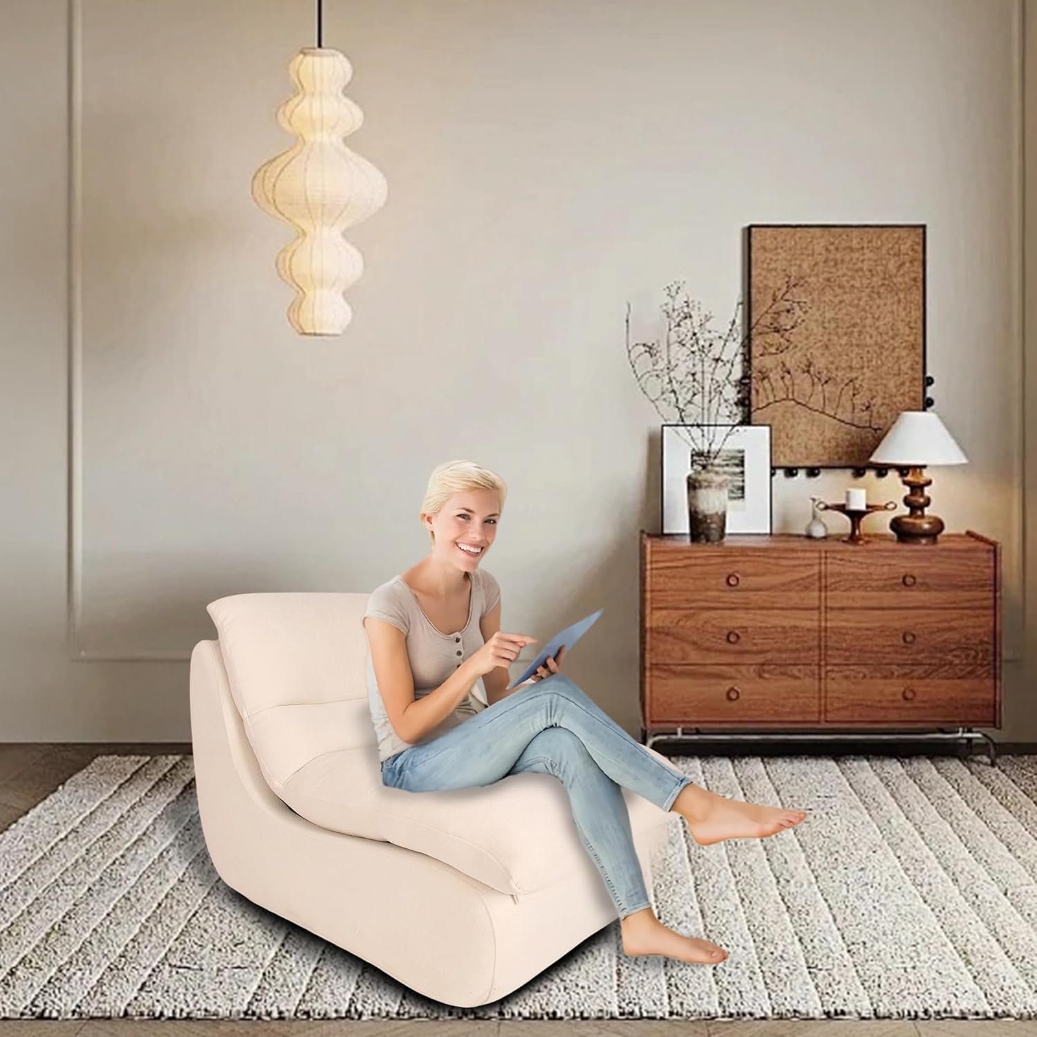 Bean Bag Chair - Memory Foam Bean Bag Chair for Adults, Comfy High-Resilience Single Sofa, Small Space Floor Chair, Chaise Lounge for Living Room, Bedroom (Beige, Cushions)