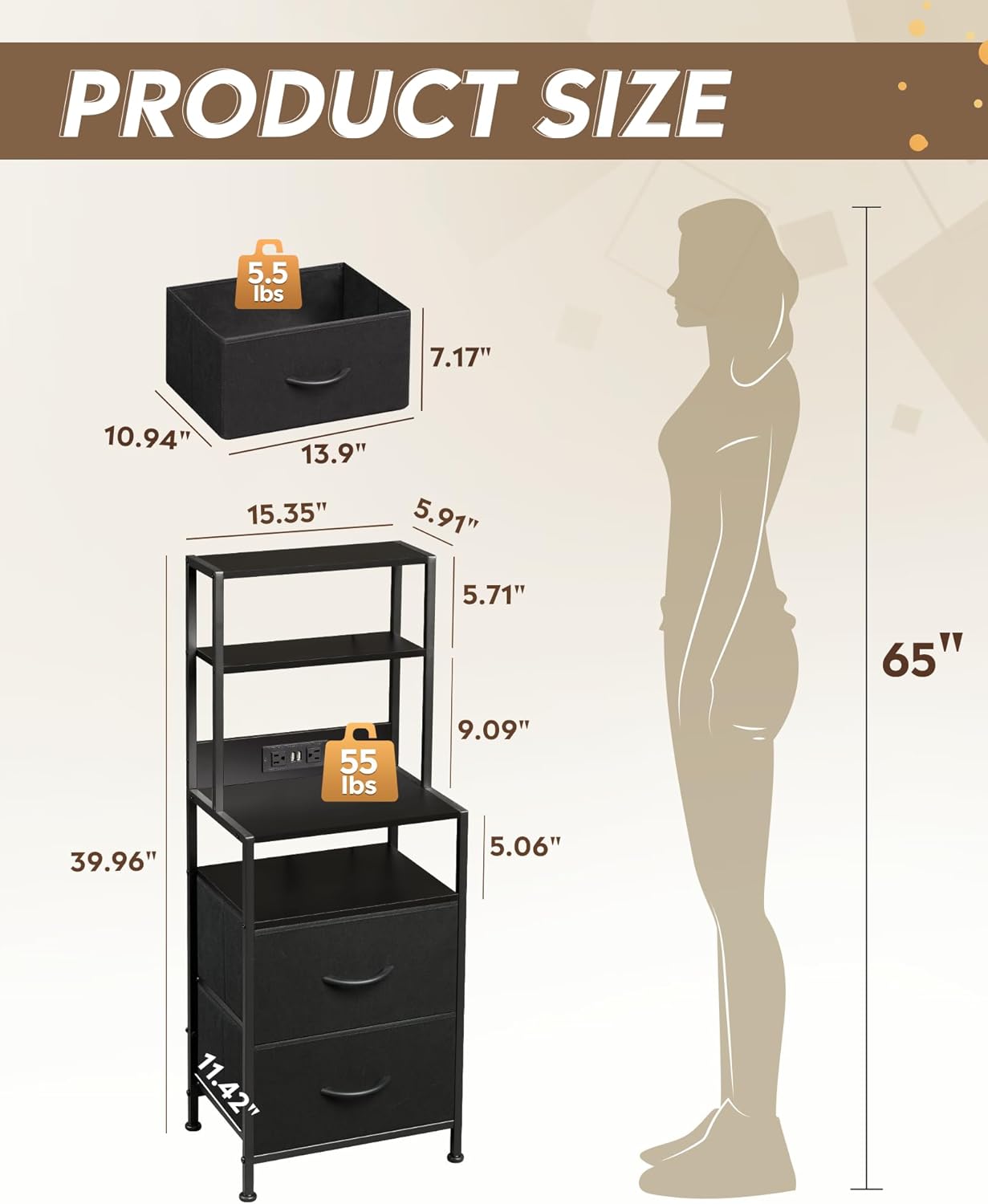 - [Ample Storage] The nightstand table is the perfect companion for your wardrobe organization, featuring 2 fabric drawers and multi-tier shelves that adapt to all your storage needs. Its clever design transforms your space into a cozy room.