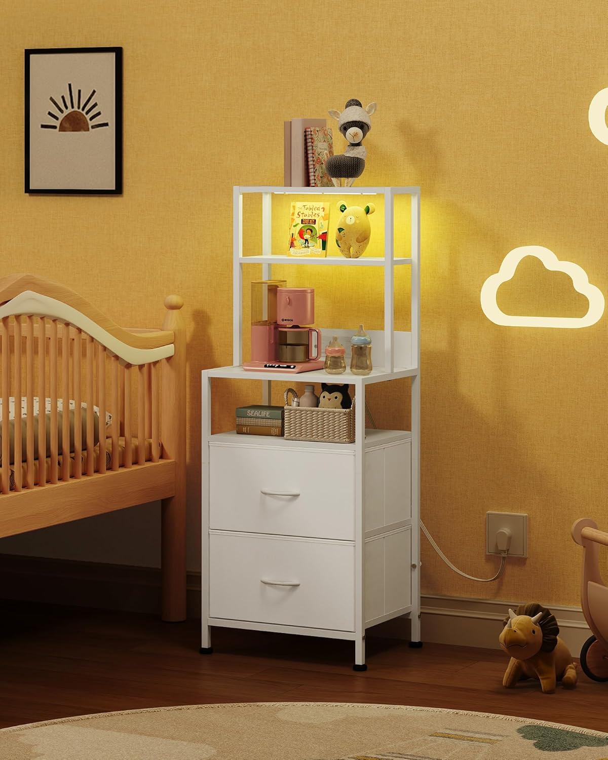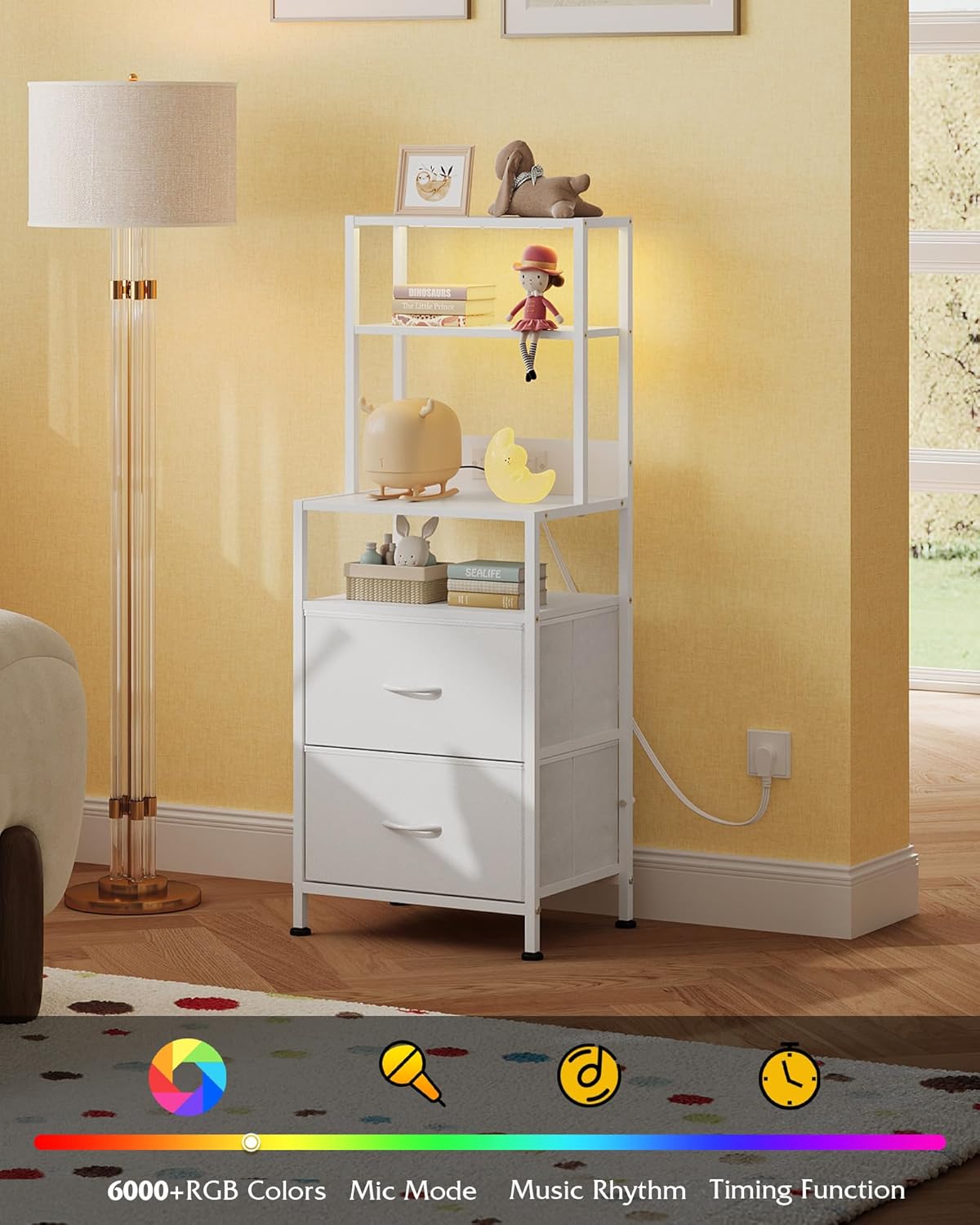 - [Customizable LED Light] This LED nightstand features a multi-color LED light strip controlled via a mobile app. Adjust brightness to create a soothing atmosphere, perfect as a bedside table for overcoming fear of the dark and promoting restful sleep.