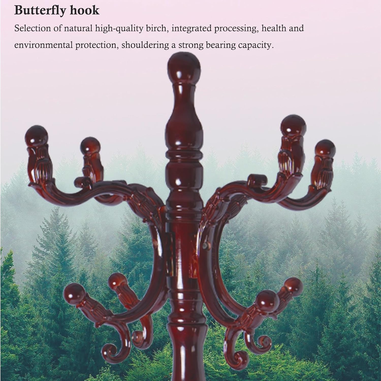 - 【Natural Solid Wood】The wooden coat rack is carefully selected from natural birch wood. The wood coat rack freestanding has a natural texture, which is tough and sturdy, wear-resistant and not easy to crack. Coat tree hanger can hang handbags, hats, keys, backpacks, scarves, ties, or any other small things you want.