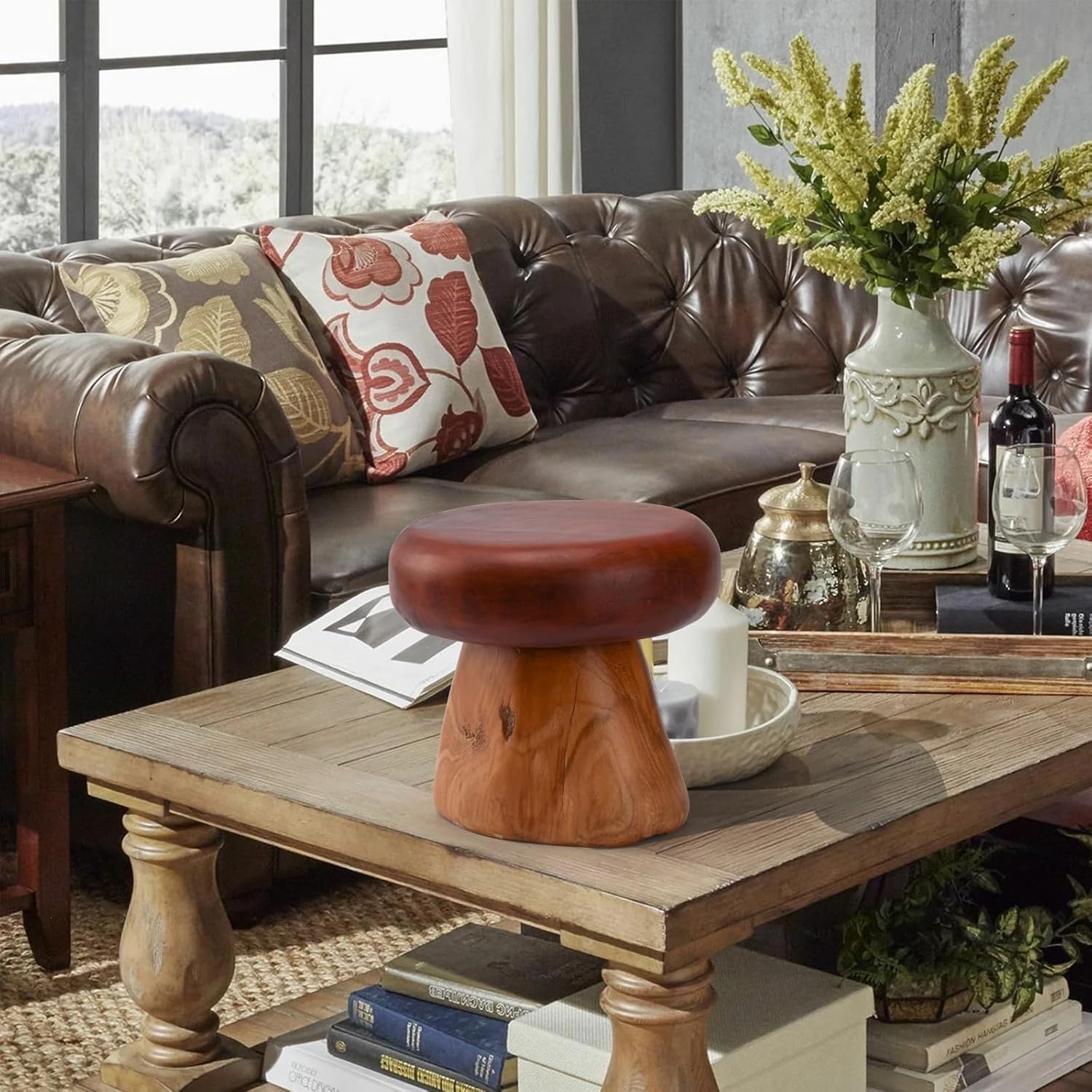 8 Inch Small Mushroom Wood Decoration, Unique Design Live Edge Wood Stool, Freeform Natural Plant Stand for Garden, Yard, Living Room, Bedroom