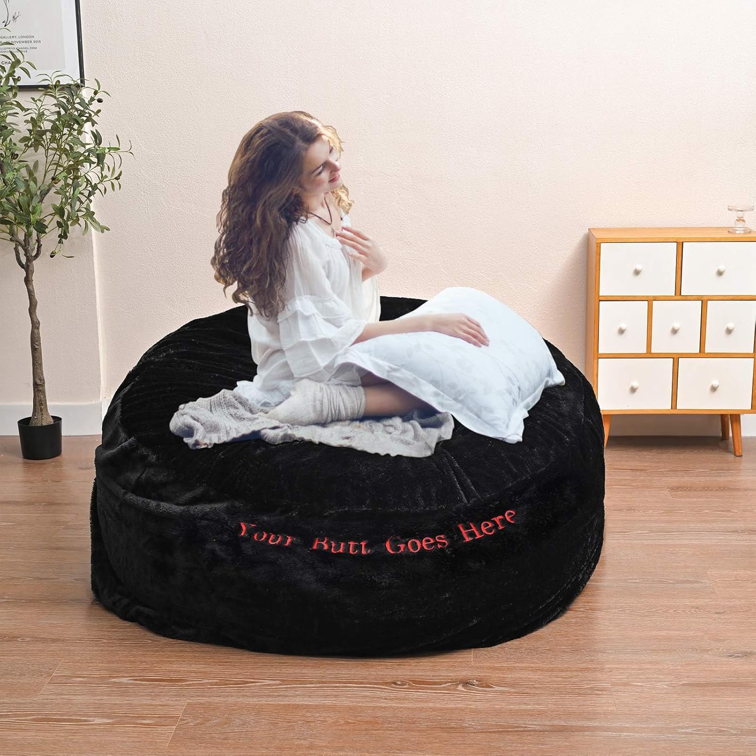 Beanbag Chair Cover for Adults Kids with Funny Words Embroidered Comfy Fluffy Round Beanbag Lazy Sofa Cover for Reading Chair Floor Chair, 3.5FT, Black
