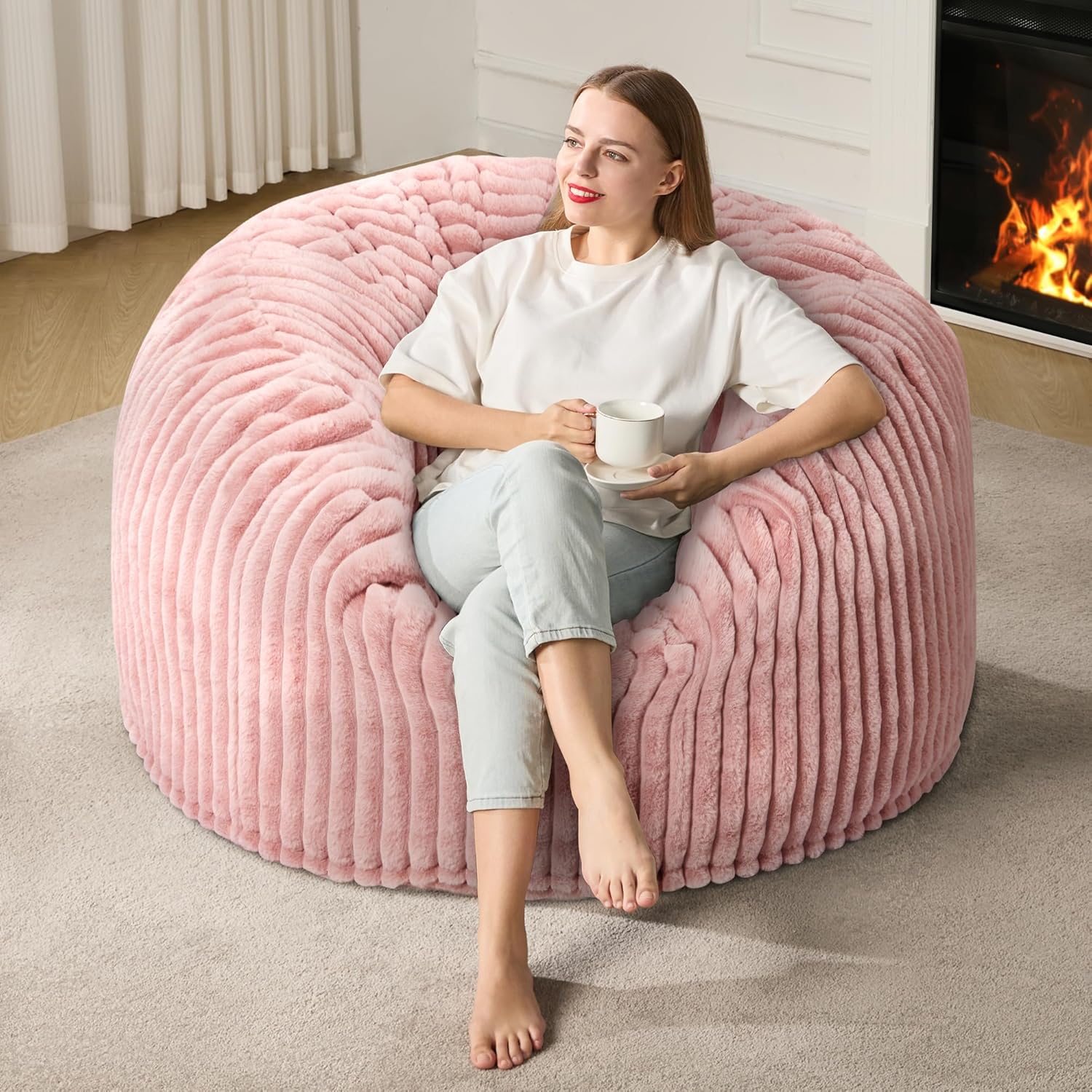 4ft Bean Bag Chairs for Adults Large Beanbag Chair with Stripe Plush Cover Big Bean Bag Chair for Living Room Bedroom Dorm Office