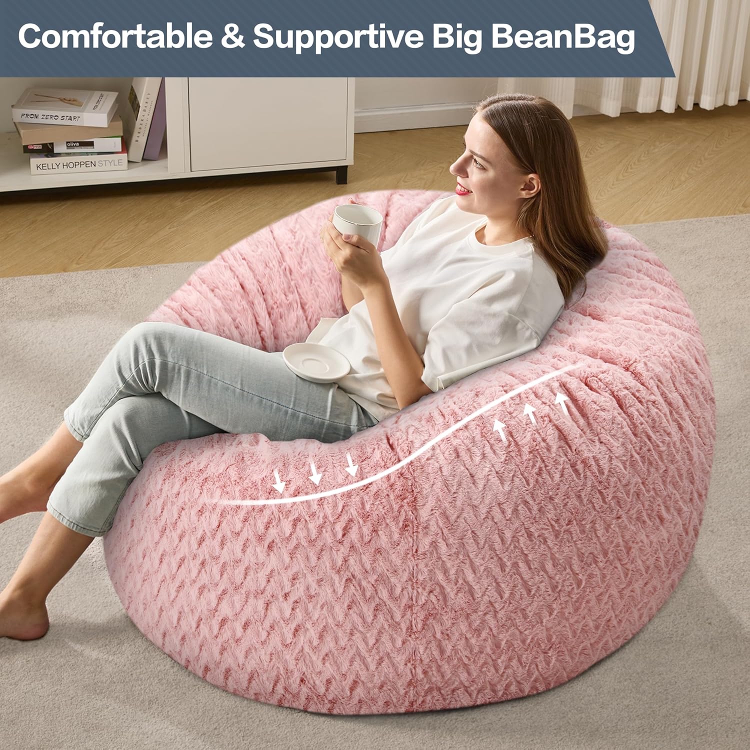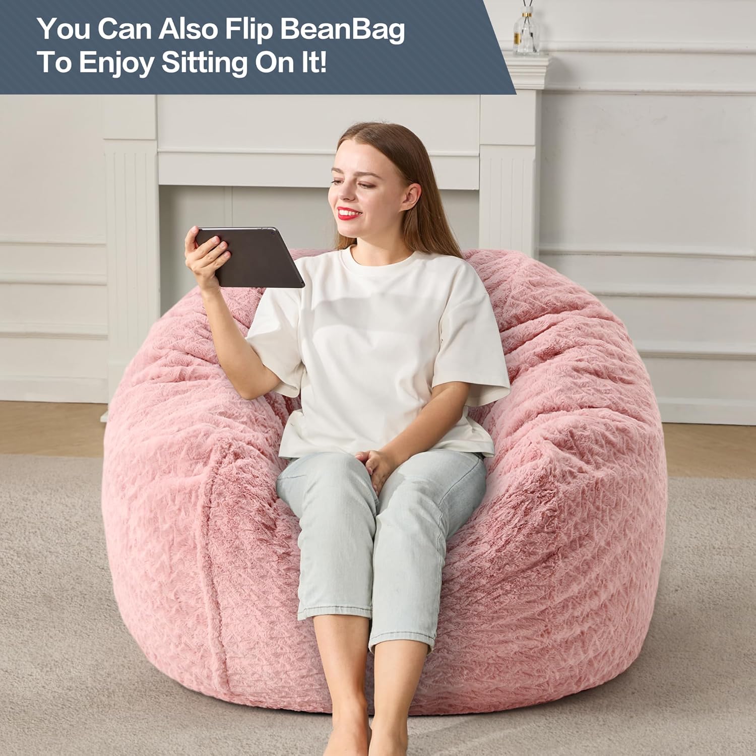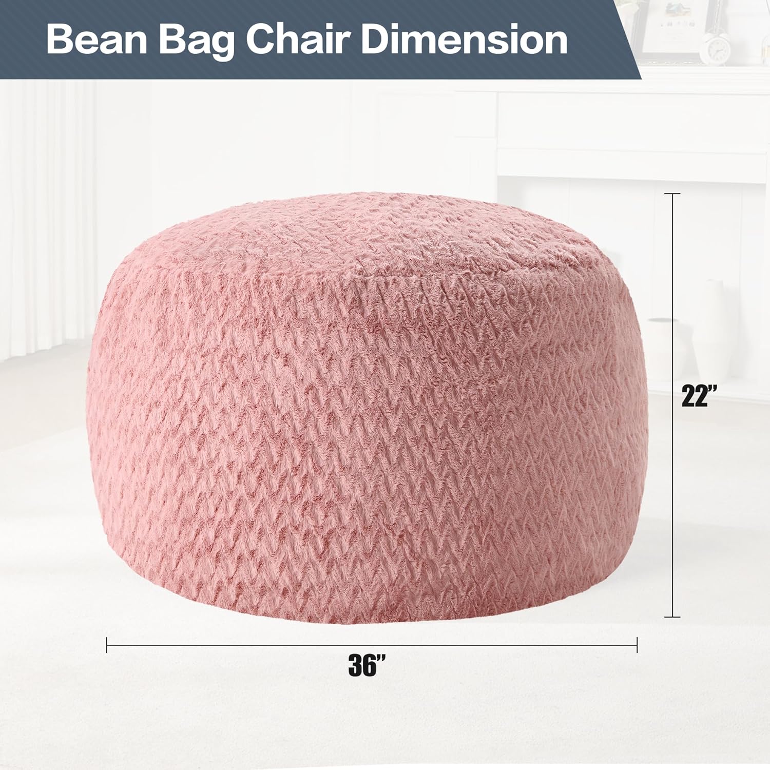 3ft Bean Bag Chairs for Adults Large Beanbag Chair with Chevron Plush Fur Cover Big Bean Bag Chair for Living Room Bedroom Dorm (Pink)