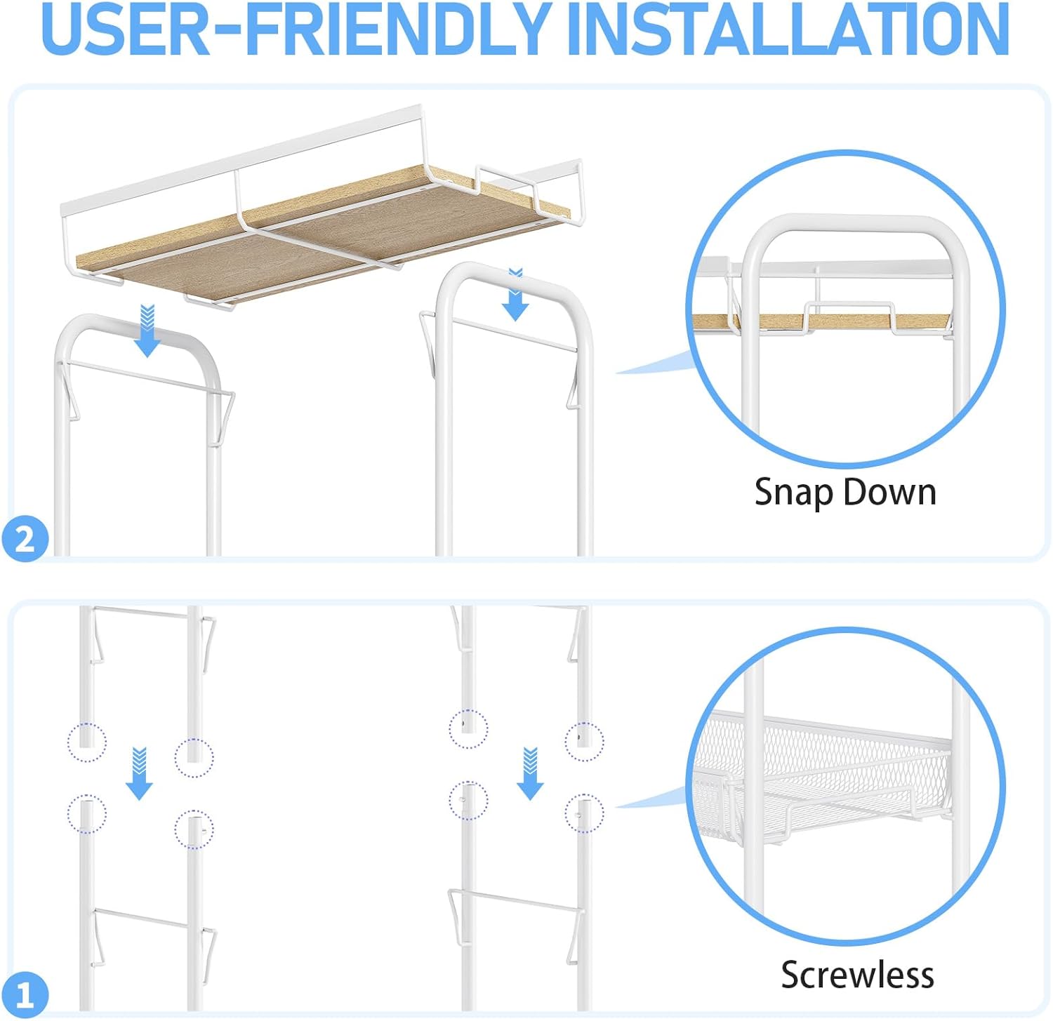 - 【EFFORTLESS SETUP】It's easy to put this narrow slide - out cart together. You don't need screws or tools. Just snap the mesh baskets onto the side rack and push in the 4 wheels. Then the wheels can spin all the way around.