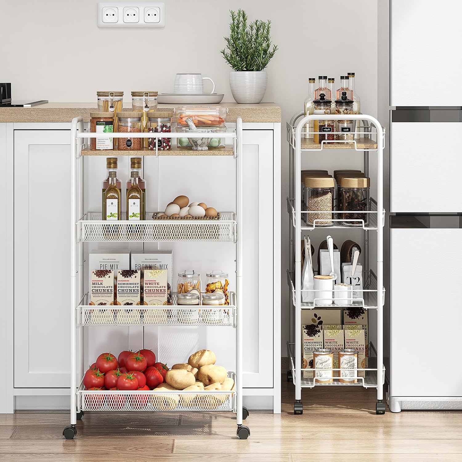 - 【SPACE-SAVING STORAGE】This 4-tier skinny rolling cart offers ample storage for essentials across various settings like bathrooms, bedrooms, and offices, making it ideal for tight spaces.