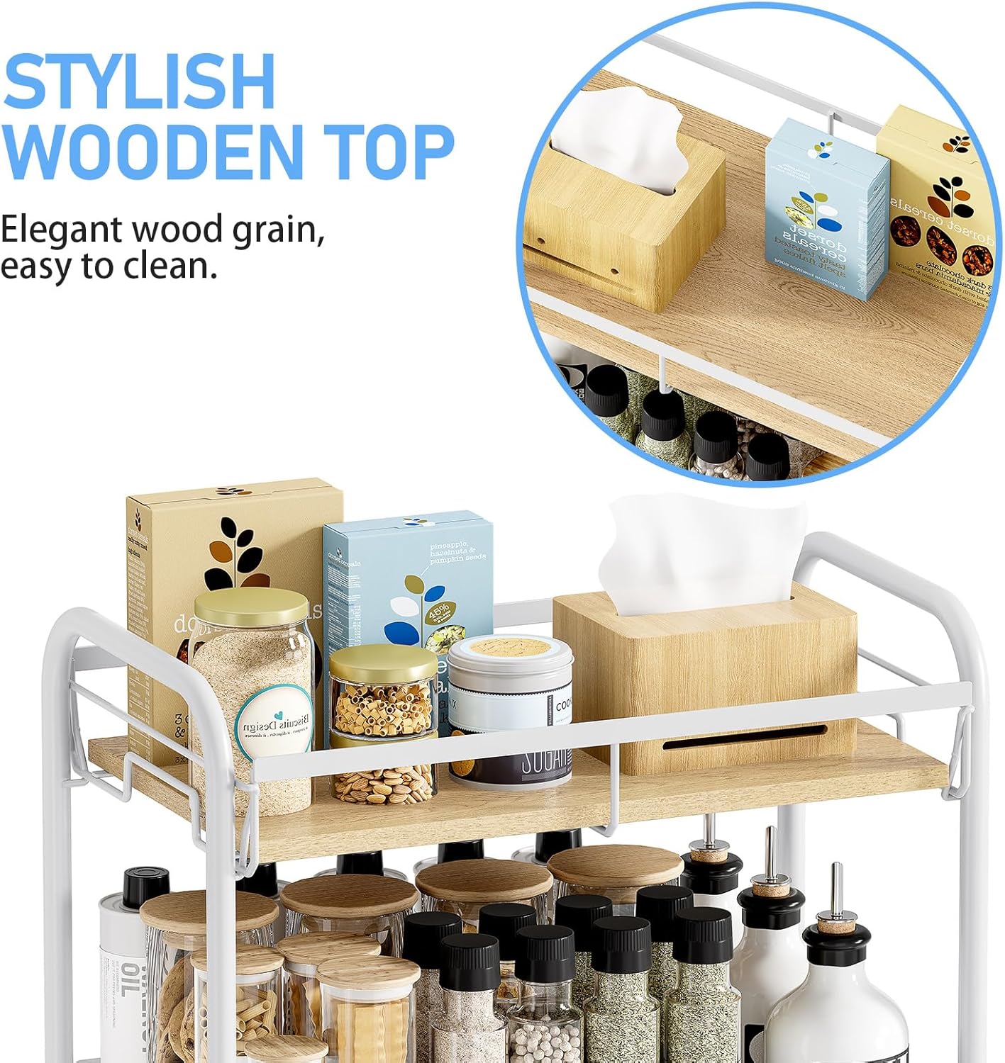 - 【DELIGHTS NARROW SPACES】Sized at 7.6"D x 17.2"W x 32.3"H, this slim rolling cart can easily fit into the narrow gap between your kitchen counter and refrigerator, providing extra storage space.
