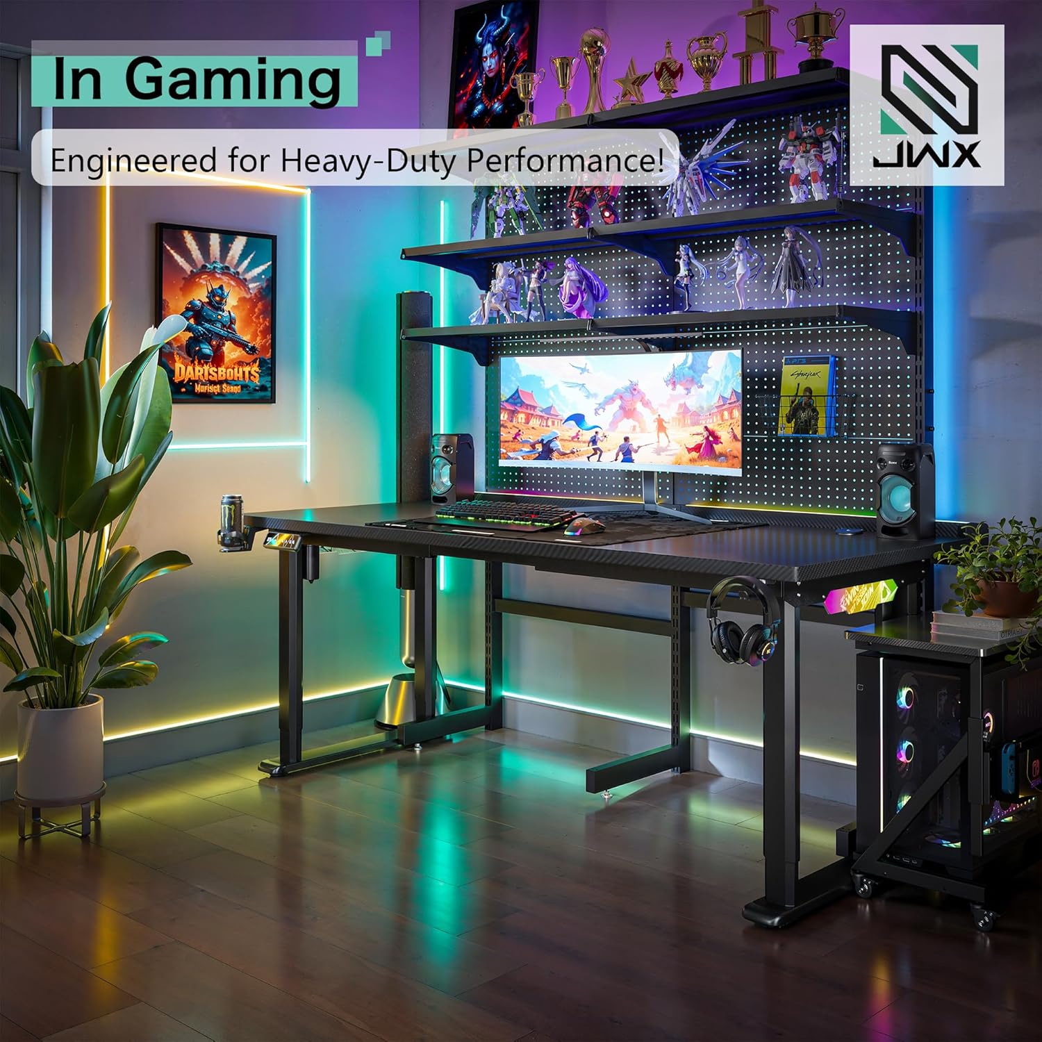 JWX Dual Motor 4 Leg Standing Gaming Desk with LED Lights,71'' Height Adjustable Sit Stand Computer Table, Flip-Up Cable Management Panel, Memory Presets Ergonomic Workstation for Gaming Room Setup
