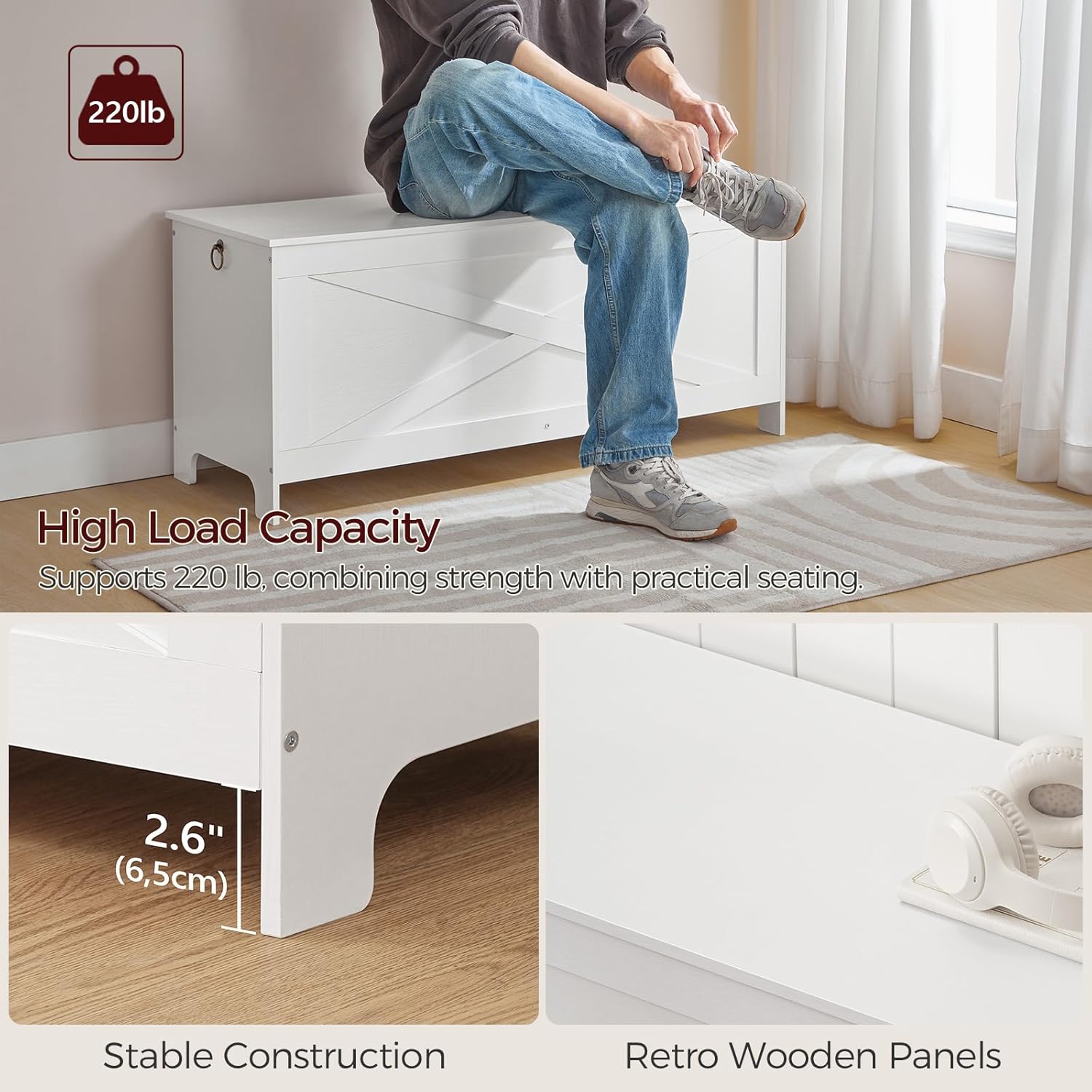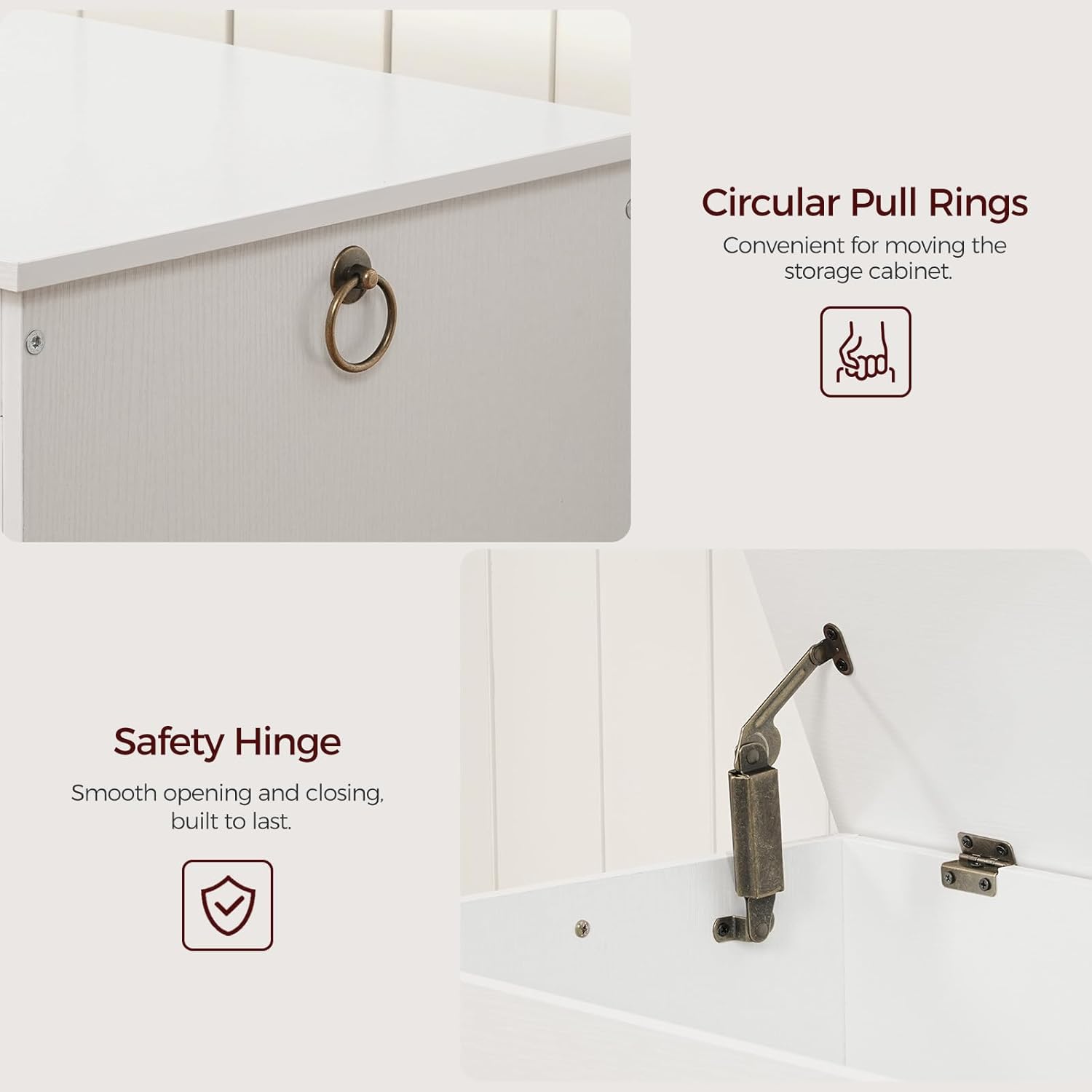 43.3" Toy Chest, Sturdy Entryway Storage Chest with Safety Hinges, Retro Toy Box, Wooden Look Accent Furniture for Living Room, Bedroom, White SCWT48501