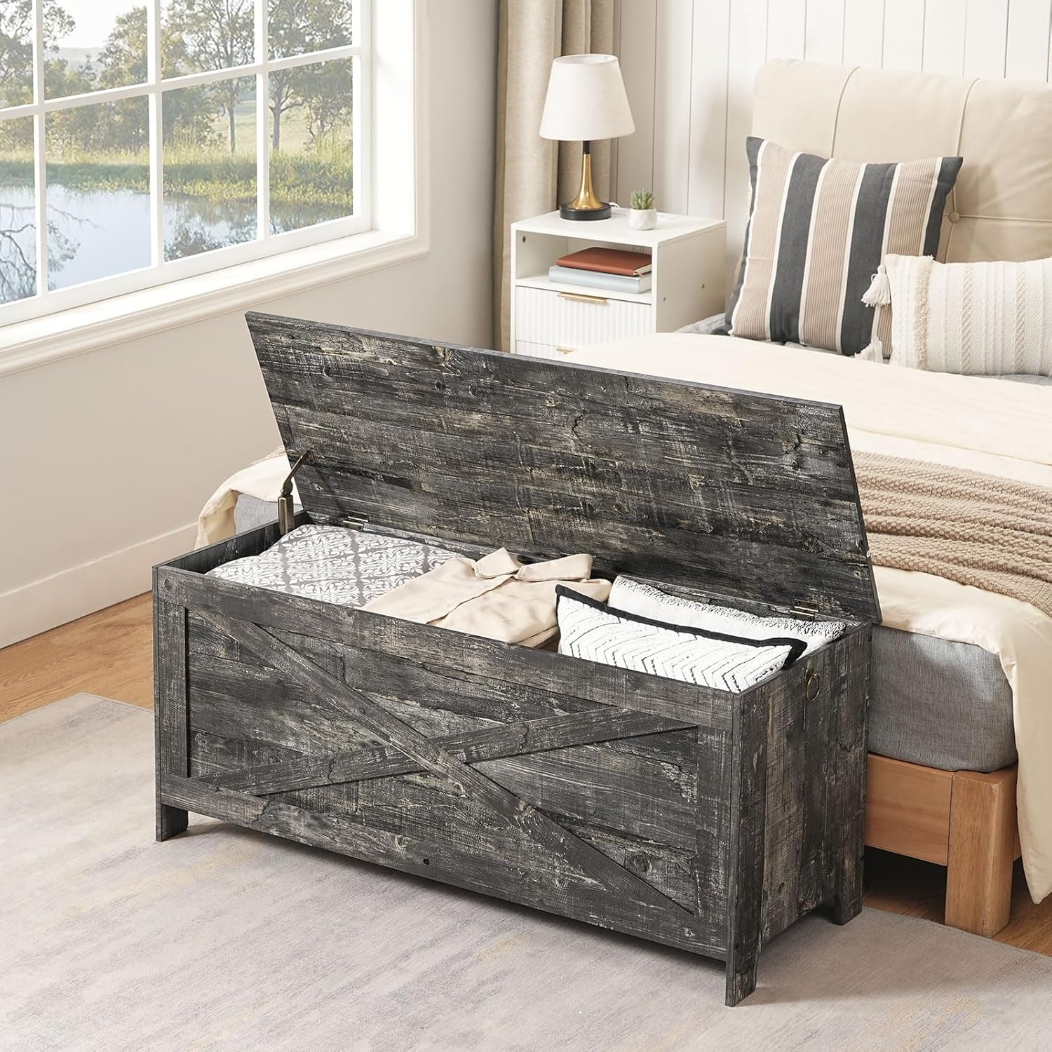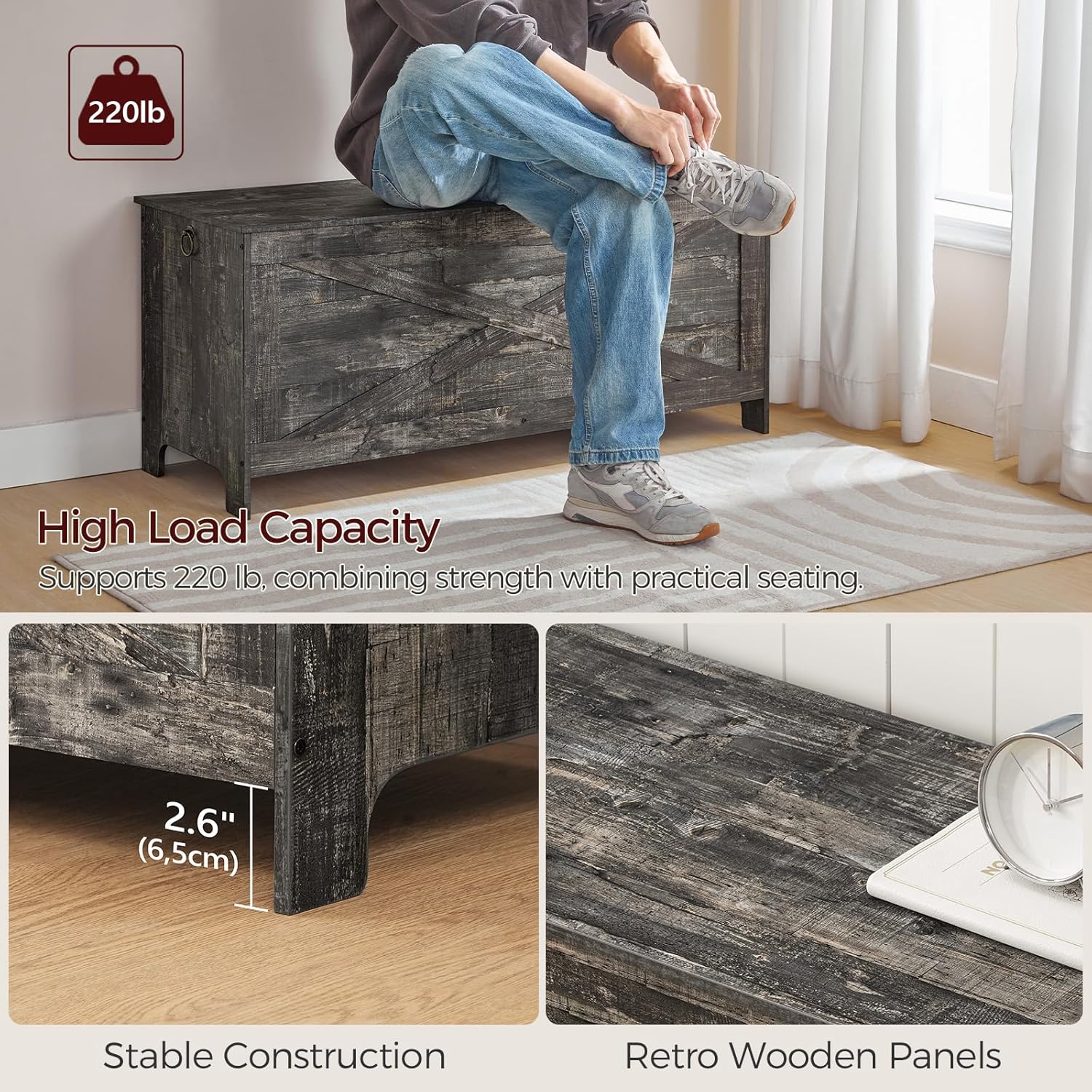43.3" Toy Chest, Sturdy Entryway Storage Chest with Safety Hinges, Retro Toy Box, Wooden Look Accent Furniture for Living Room, Bedroom, Vintage Gray SCRP48501