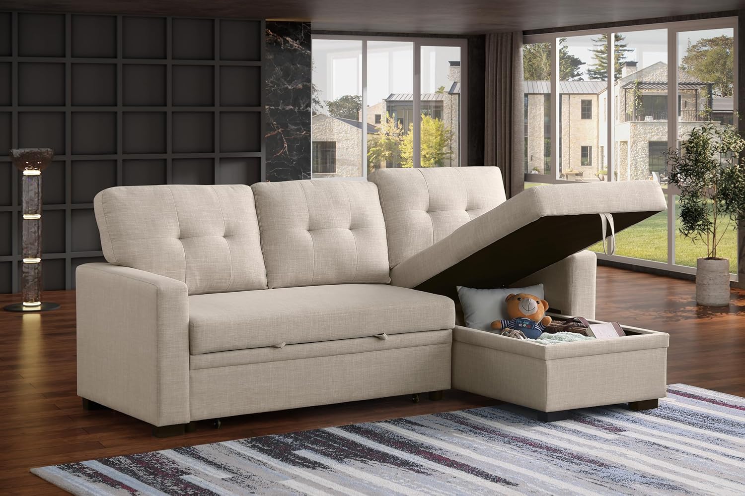 Devion Furniture Meridian 4-in-1 Convertible L Shaped Couch with Pull Out Bed and Storage, Sectional Sleeper Sofa with Reversible Chaise for Living Room, Apartment, Bedroom, Office